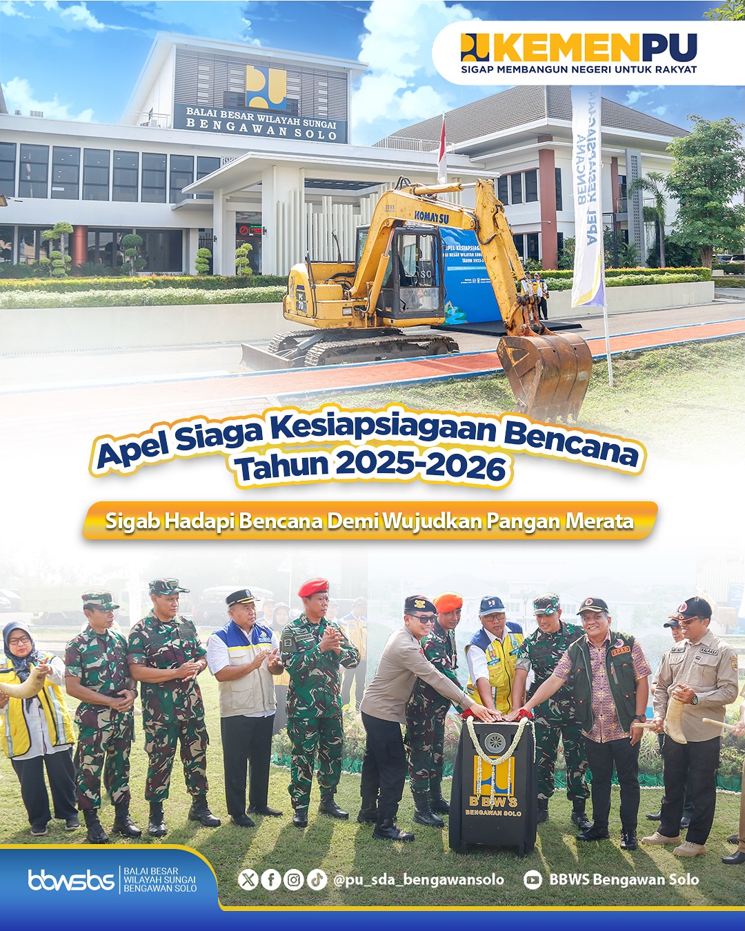 Dalam rangka meningkatkan kesiapsiagaan menghadapi musim penghujan tahun 2025-2026, BBWSBS menyelenggarakan Apel Kesiapsiagaan Bencana yang dipimpin oleh Kepala BBWSBS, Gatut Bayuadji pada Selasa (21/10/2025) di Kantor BBWS Bengawan Solo, Pabelan, serta di wilayah Madiun dan Hilir.