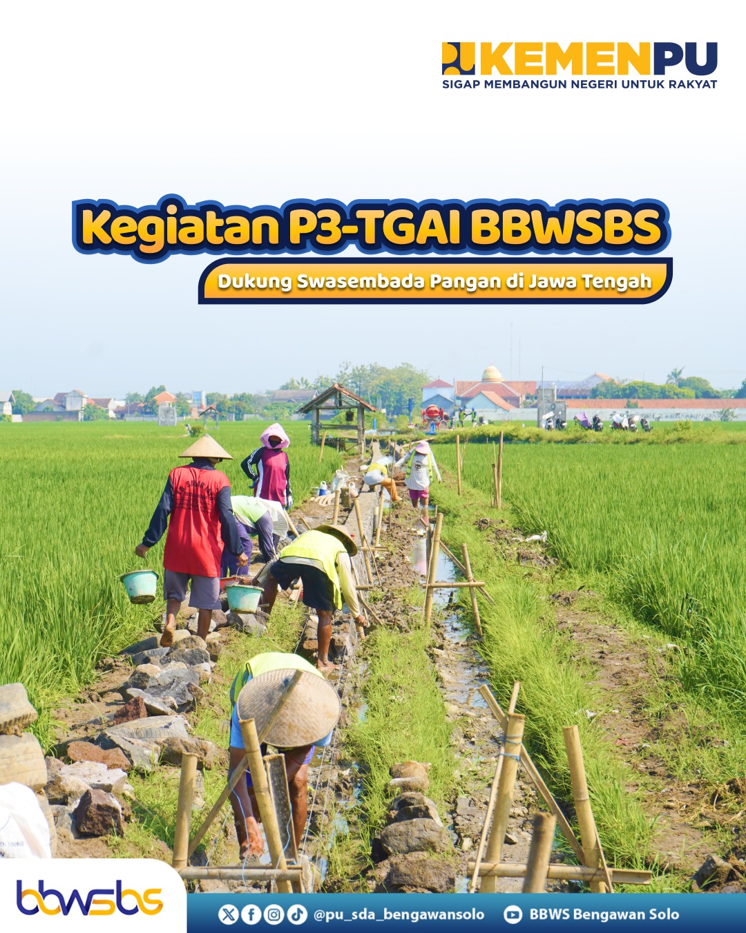 <div>BBWSBS melaksanakan Program Percepatan Peningkatan Tata Guna Air Irigasi (P3-TGAI) di wilayah Jawa Tengah. Program ini merupakan langkah nyata untuk meningkatkan kinerja jaringan irigasi, mendukung produktivitas pertanian, dan menumbuhkan semangat swakelola di tingkat masyarakat. <br><br>Pada pelaksanaan Tahap I dan II Tahun 2025, kegiatan P3-TGAI BBWSBS mencakup 251 lokasi yang tersebar di 6 kabupaten di Jawa Tengah. Melalui pendekatan padat karya dan pemberdayaan masyarakat, program ini tidak hanya meningkatkan infrastruktur irigasi, tetapi juga memberikan dampak ekonomi langsung bagi masyarakat sekitar. <br><br>Dengan jaringan irigasi yang lebih baik, <br>distribusi air pertanian menjadi lebih efisien, sehingga lahan sawah dapat berproduksi secara optimal. Langkah ini turut mendorong tercapainya tujuan besar Presiden Prabowo Subianto untuk mewujudkan swasembada pangan yang berkelanjutan, demi kesejahteraan petani dan kemajuan bangsa.</div>
