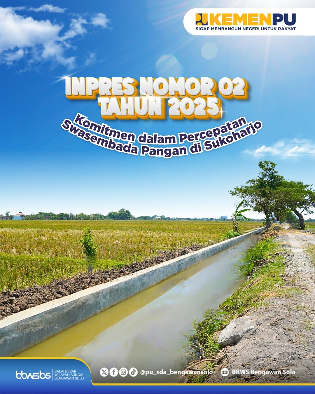 <div>Kepala BBWSBS, Gatut Bayuadji melakukan koordinasi lapangan bersama Tenaga Ahli Menteri Pertanian, Supardiyanto, Direktur Irigasi Pertanian Kementerian Pertanian, Dhani Gartina, serta Kepala Dinas Pertanian Kabupaten Sukoharjo, Bagas Widaryanto dalam rangka penyampaian progres pelaksanaan Instruksi Presiden (Inpres) Nomor 02 Tahun 2025 di Desa Sugihan, Kecamatan Bendosari, Kabupaten Sukoharjo, Jawa Tengah pada Kamis (9/10/2025).<br><br>Kegiatan yang berlangsung di Kabupaten Sukoharjo tersebut bertujuan memperkuat sinergi lintas sektor dalam upaya percepatan peningkatan infrastruktur irigasi pertanian, guna mendukung ketahanan pangan nasional.<br><br>Dalam forum tersebut, dibahas berbagai capaian dan tantangan teknis di lapangan, termasuk peran strategis BBWSBS dalam mendukung ketersediaan air irigasi melalui pengelolaan sumber daya air yang terintegrasi dan berkelanjutan.<br><br>Kunjungan ini menjadi langkah penting untuk memastikan pelaksanaan Inpres berjalan tepat sasaran, sekaligus memperkuat komitmen bersama dalam mewujudkan swasembada pangan melalui kolaborasi antara sektor pertanian dan sumber daya air.</div>