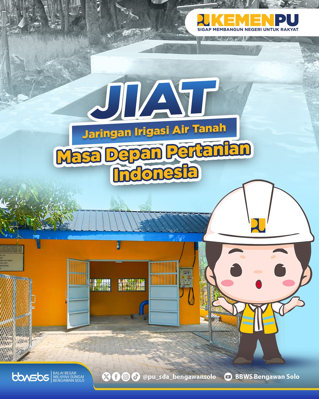 <div>Jaringan Irigasi Air Tanah (JIAT) adalah jaringan irigasi yang airnya berasal dari air tanah, mulai dari sumur dan instalasi pompa sampai dengan saluran irigasi air tanah termasuk bangunan di dalamnya.<br><br>JIAT bukan hanya soal teknologi, tapi juga soal harapan. Harapan agar petani kecil tetap bisa panen. Dan harapan agar generasi muda melihat pertanian sebagai masa depan, bukan masa lalu.<br><br>Lebih dari itu, JIAT adalah langkah nyata menuju swasembada pangan. Dengan memastikan ketersediaan air sepanjang tahun, JIAT membantu meningkatkan produktivitas pertanian, mengurangi ketergantungan pada impor, dan memperkuat ketahanan pangan nasional.</div>