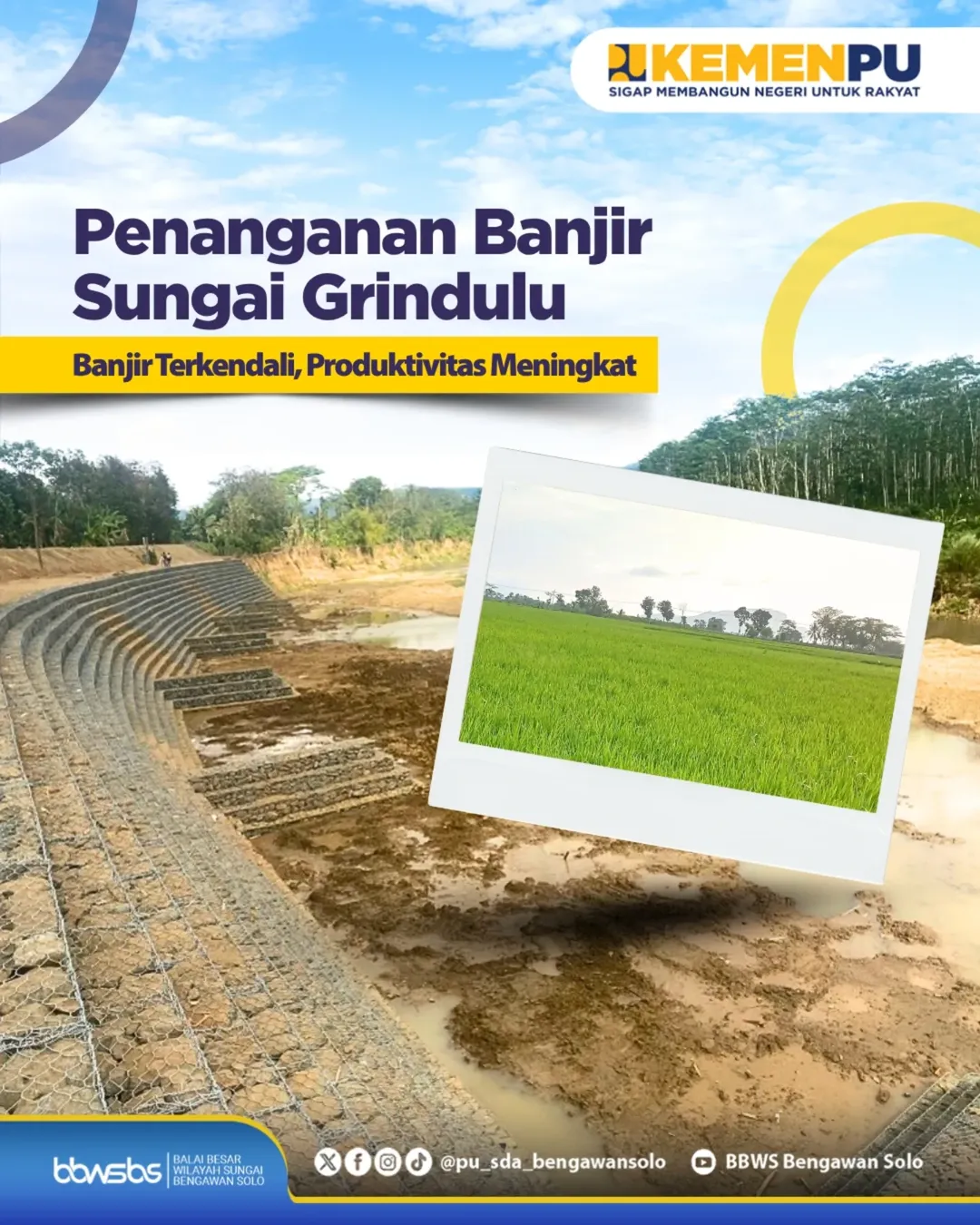 <div>Sungai Grindulu berperan penting dalam menjaga keseimbangan lingkungan dan ketersediaan air bagi masyarakat sekitar. Meski begitu, beberapa titik masih rawan banjir dan erosi sehingga diperlukan upaya penguatan untuk menjaga stabilitas wilayah.<br><br>BBWSBS melakukan berbagai pekerjaan pengendalian banjir dan perlindungan tebing pada lokasi prioritas guna mengurangi risiko kerusakan lahan, melindungi hunian warga, serta memastikan akses masyarakat tetap aman. Langkah ini menjadi bagian dari komitmen untuk meningkatkan ketahanan wilayah terhadap bencana.<br><br>Hasilnya mulai terlihat. Lahan yang sebelumnya rentan terendam kini kembali produktif, sehingga petani dapat beraktivitas dengan lebih pasti. Lingkungan menjadi lebih aman, aktivitas masyarakat berjalan lancar, dan keberlanjutan pertanian tetap terjaga.</div>