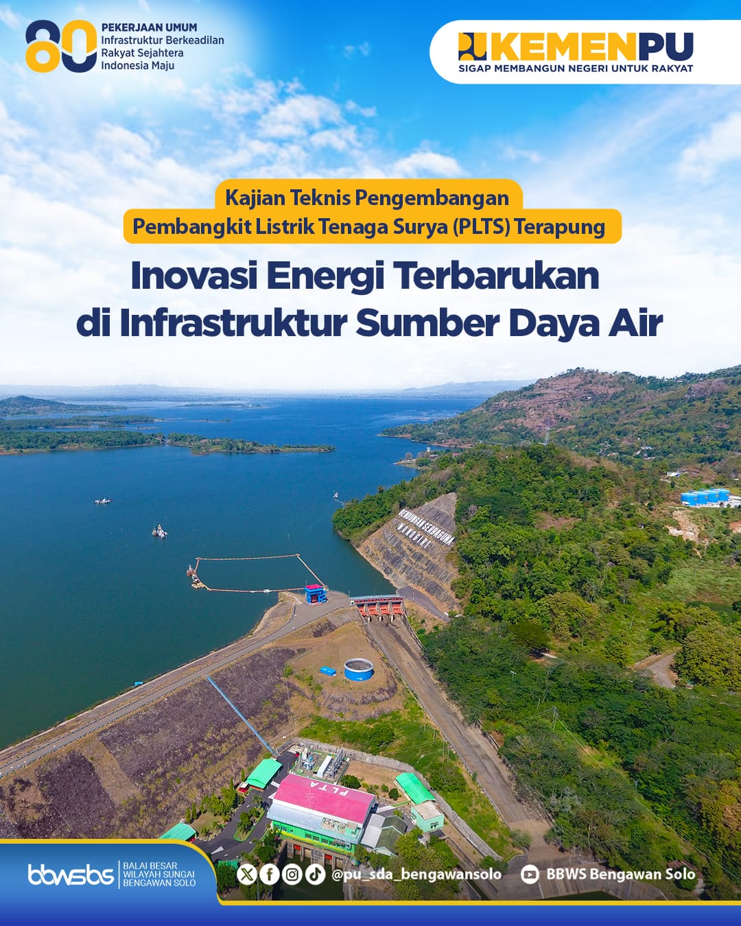 <div>Kementerian Pekerjaan Umum mengadakan rapat pembahasan penyusunan kajian teknis pengembangan PLTS terapung pada 259 bendungan yang dikelola Kementerian PU di Wilayah Sumatera, Jawa, dan Bali. Pertemuan yang berlangsung pada Selasa, 18 November 2025 di BBWSBS ini menjadi langkah penting dalam mempersiapkan pemanfaatan energi bersih melalui teknologi PLTS terapung di berbagai bendungan nasional.<br><br>Teknologi PLTS terapung dipandang mampu mendukung penyediaan listrik ramah lingkungan tanpa mengganggu fungsi utama bendungan. Melalui pembahasan ini, berbagai aspek kelayakan dibahas, termasuk potensi pemanfaatan ruang perairan serta peluang pengembangan energi terbarukan yang dapat memberikan manfaat luas bagi masyarakat terutama dalam mendukung swasembada energi.<br><br>Sehari sebelumnya, pada Senin, 17 November 2025, dilakukan kunjungan lapangan ke Bendungan Wonogiri. Kegiatan ini memberikan gambaran langsung mengenai kondisi bendungan sebagai bahan pertimbangan dalam penyusunan kajian teknis, sehingga rekomendasi yang disusun dapat lebih sesuai dengan kebutuhan lapangan.<br><br>BBWSBS mendukung penuh rangkaian kegiatan ini sebagai bagian dari upaya bersama dalam mendorong swasembada energi melalui pengembangan energi bersih dan pemanfaatan bendungan yang berkelanjutan di wilayah sungai.</div>