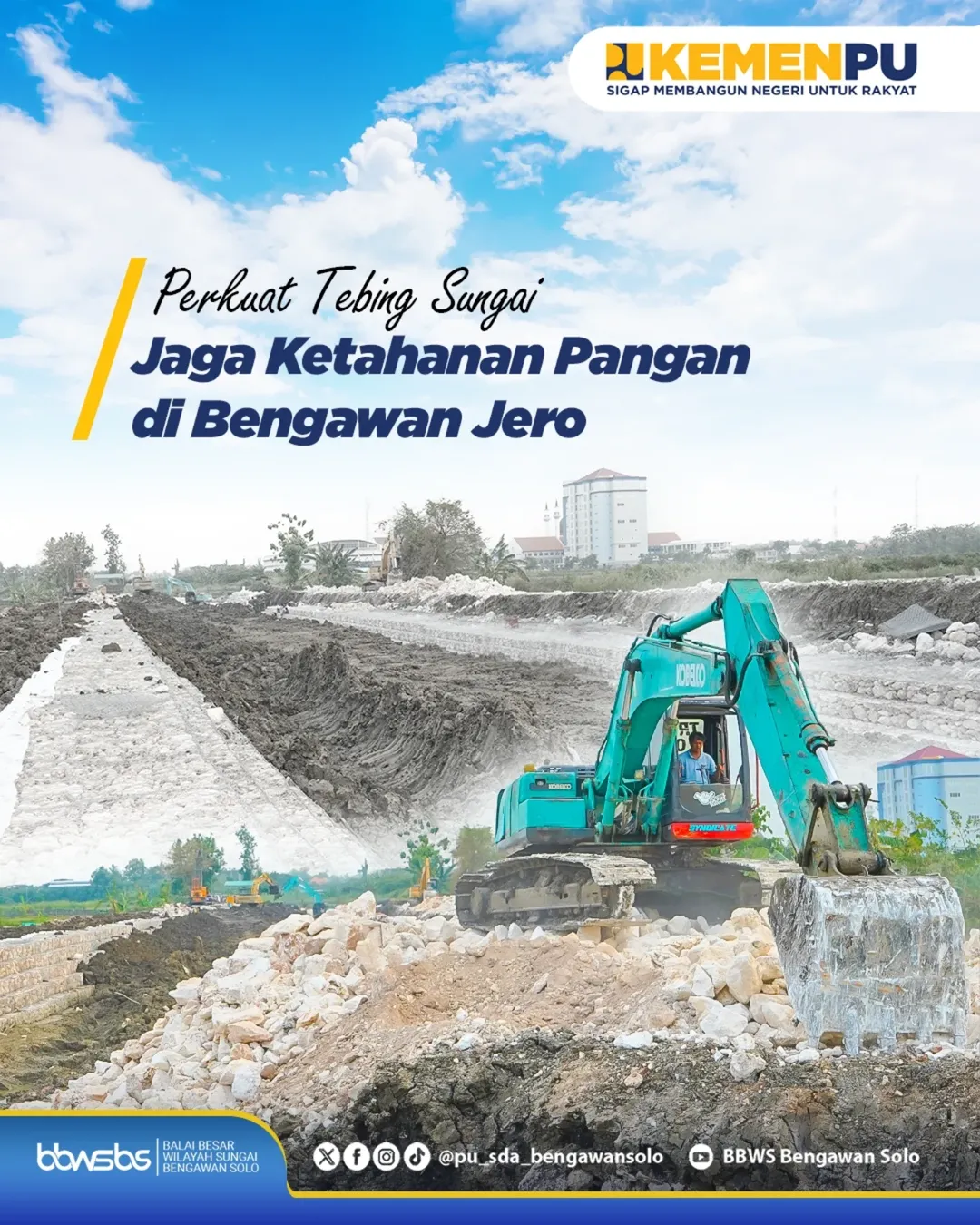 <div>Pekerjaan pengendalian banjir Bengawan Jero di Kabupaten Lamongan, Jawa Timur, menjadi salah satu langkah nyata dalam mendukung swasembada pangan nasional melalui penguatan infrastruktur sumber daya air.<br><br>Melalui pembangunan bronjong sepanjang 916 meter, infrastruktur ini diharapkan dapat memberikan manfaat besar bagi masyarakat sekitar dengan melindungi area pertanian dan permukiman seluas 100 hektare dari ancaman banjir serta potensi kerusakan lahan. Upaya tersebut diharapkan mampu menciptakan kondisi lahan yang lebih aman, stabil, dan produktif, sehingga aktivitas pertanian dapat berlangsung lebih optimal dan berkelanjutan sepanjang tahun.<br><br>Melalui langkah ini, BBWSBS terus menunjukkan komitmen dalam membangun infrastruktur yang tidak hanya berorientasi pada pengendalian banjir semata, tetapi juga memiliki dampak strategis terhadap peningkatan produktivitas pertanian dan pencapaian swasembada pangan yang berkelanjutan.<br><br>@kementerianpu<br>@pu_sda<br><br><br></div>