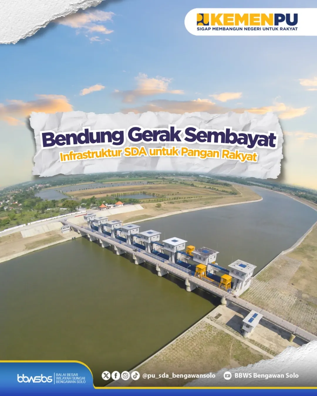<div>BBWSBS terus berkomitmen dalam pengelolaan sumber daya air (SDA) yang efektif untuk memenuhi kebutuhan masyarakat, termasuk mendukung upaya pemerintah dalam mewujudkan program Presiden Prabowo yakni swasembada pangan.<br><br>Sebagai bagian dari upaya tersebut, Kepala BBWSBS, Gatut Bayuadji, beserta jajaran melakukan kunjungan lapangan ke Bendung Gerak Sembayat di Kabupaten Gresik, Jawa Timur, pada Rabu (8/10/2025). Kunjungan ini bertujuan untuk memastikan bahwa infrastruktur SDA yang telah dibangun dapat dimanfaatkan secara optimal guna meningkatkan kesejahteraan masyarakat.<br><br>Bendung Gerak Sembayat merupakan bagian dari proyek Lower Solo River Improvement Project Phase 2 yang didanai oleh Anggaran Pendapatan Belanja Negara (APBN). Bendung ini memiliki daya tampung air sebesar 10 juta m³ dan berfungsi untuk penyediaan air baku bagi wilayah di Kabupaten Gresik dan Kabupaten Lamongan.<br><br>Melalui pengelolaan yang terencana dan berkelanjutan, BBWSBS terus berperan aktif dalam mendukung ketahanan pangan nasional dan pertumbuhan ekonomi di wilayah sungai Bengawan Solo.</div>