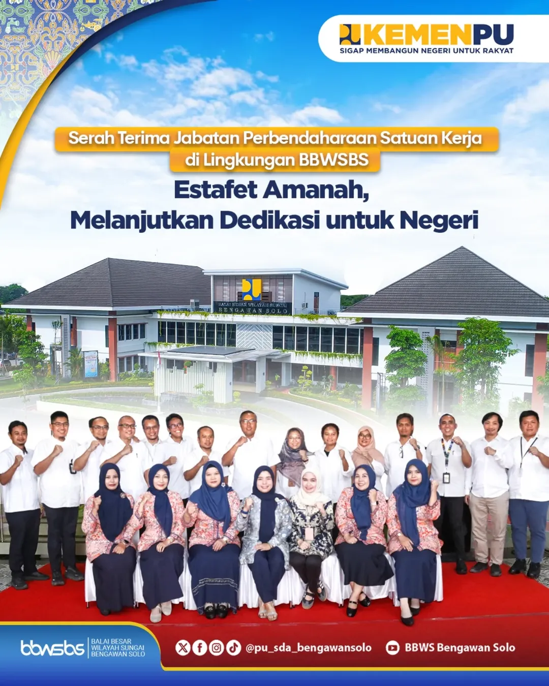 <div>BBWSBS melaksanakan Serah Terima Jabatan Perbendaharaan Satuan Kerja pada Kamis, 6 November 2025, bertempat di Lobby Kantor BBWSBS. Kegiatan ini dihadiri oleh Kepala BBWSBS, Gatut Bayuadji, bersama para Kepala Bidang, Kepala Satker, Pejabat Pembuat Komitmen (PPK), Ketua Tim Pelaksana Urusan, PPSPM, Bendahara, dan pengurus Dharma Wanita Persatuan.<br><br>Kegiatan ini merupakan bagian dari upaya BBWSBS dalam memperkuat tata kelola yang transparan, akuntabel, dan berintegritas guna mendukung pelaksanaan program pembangunan sumber daya air yang efektif dan berkelanjutan. Momentum ini juga menjadi sarana memperkuat sinergi dan profesionalisme di lingkungan kerja BBWSBS.<br><br>Terima kasih dan apresiasi yang setinggi-tingginya disampaikan kepada para pejabat sebelumnya atas dedikasi serta kontribusinya selama menjabat. Selamat bertugas kepada para pejabat baru, semoga amanah dan terus memberikan kinerja terbaik bagi kemajuan BBWSBS dan masyarakat.</div>