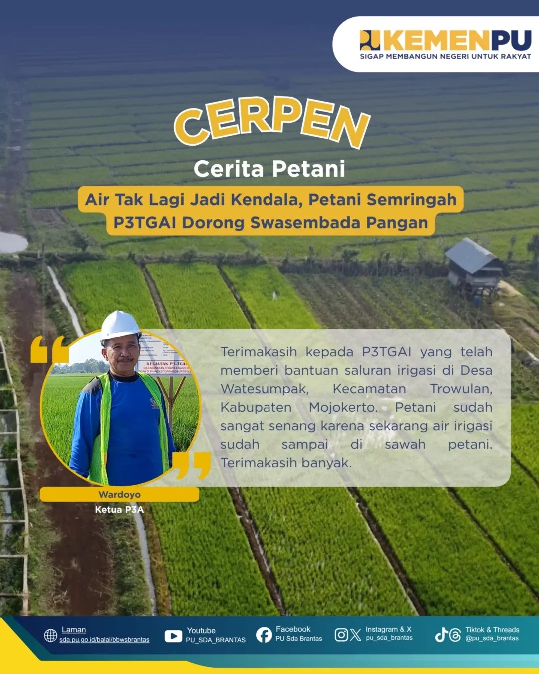 Laporan kinerja BBWS Brantas adalah dokumen yang disusun oleh Balai Besar Wilayah Sungai (BBWS) Brantas, yang berisi ringkasan kegiatan, capaian, evaluasi, dan rencana tindak lanjut dari program kerja yang dilakukan dalam satu periode tertentu