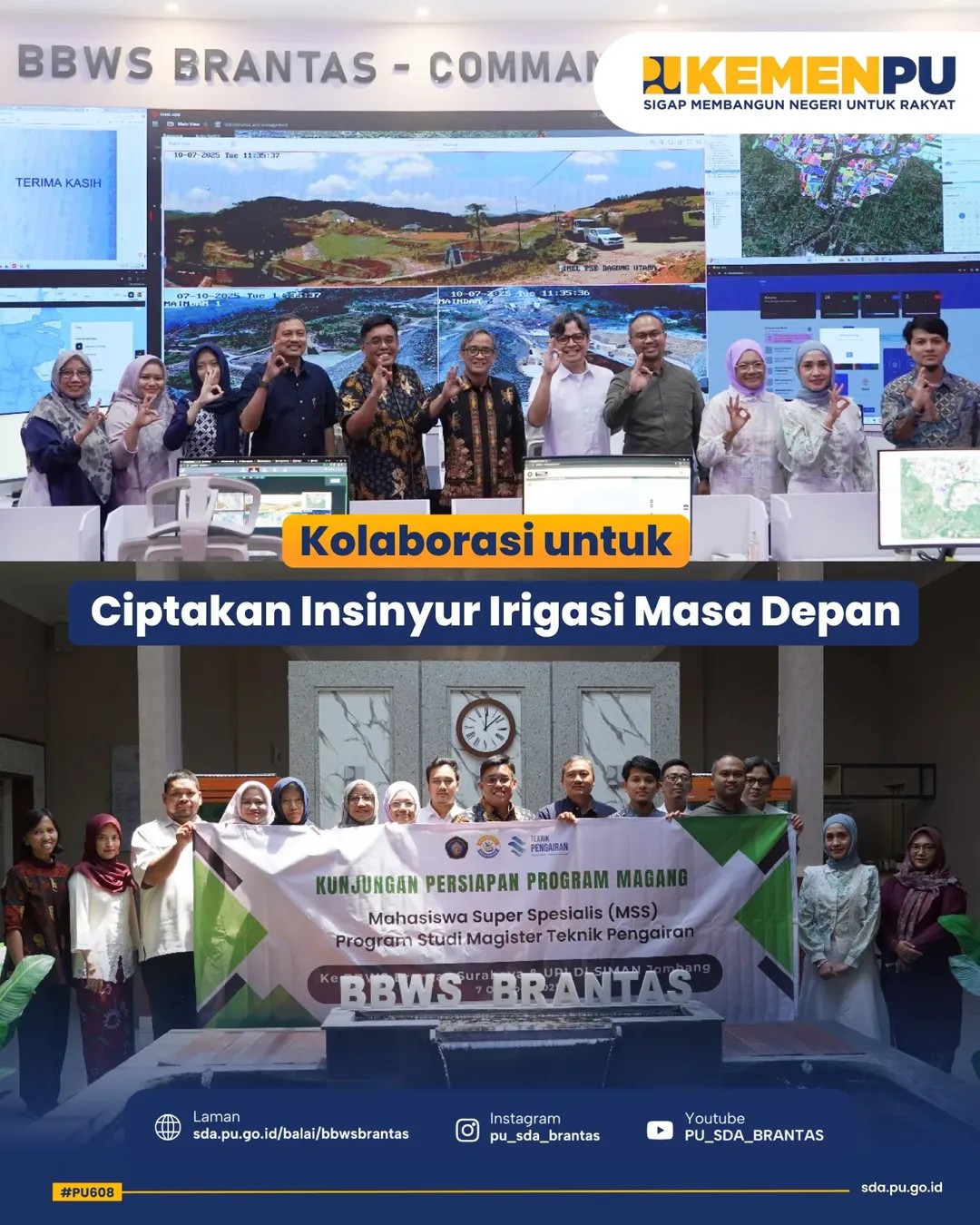 Surabaya, 7 Oktober 2025 - Departemen Teknik Pengairan, Universitas Brawijaya berkunjung ke BBWS Brantas untuk menjajaki kerja sama Program Studi Teknik Pengairan Magister Super Spesialis Rekayasa Teknologi Operasi dan Pemeliharaan Irigasi π§π