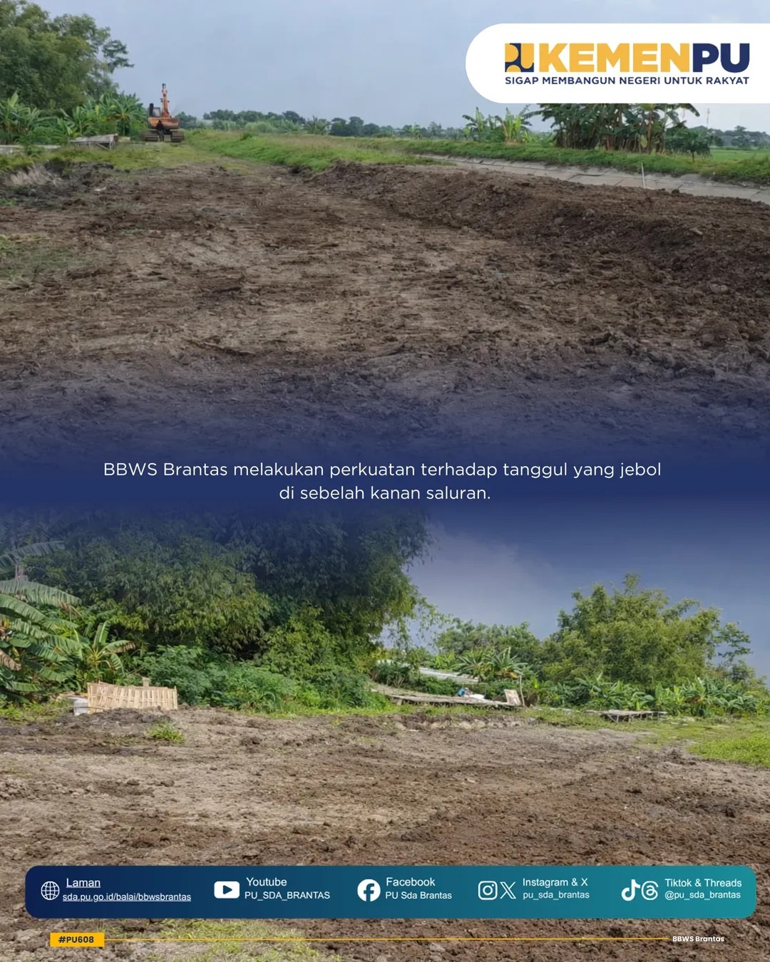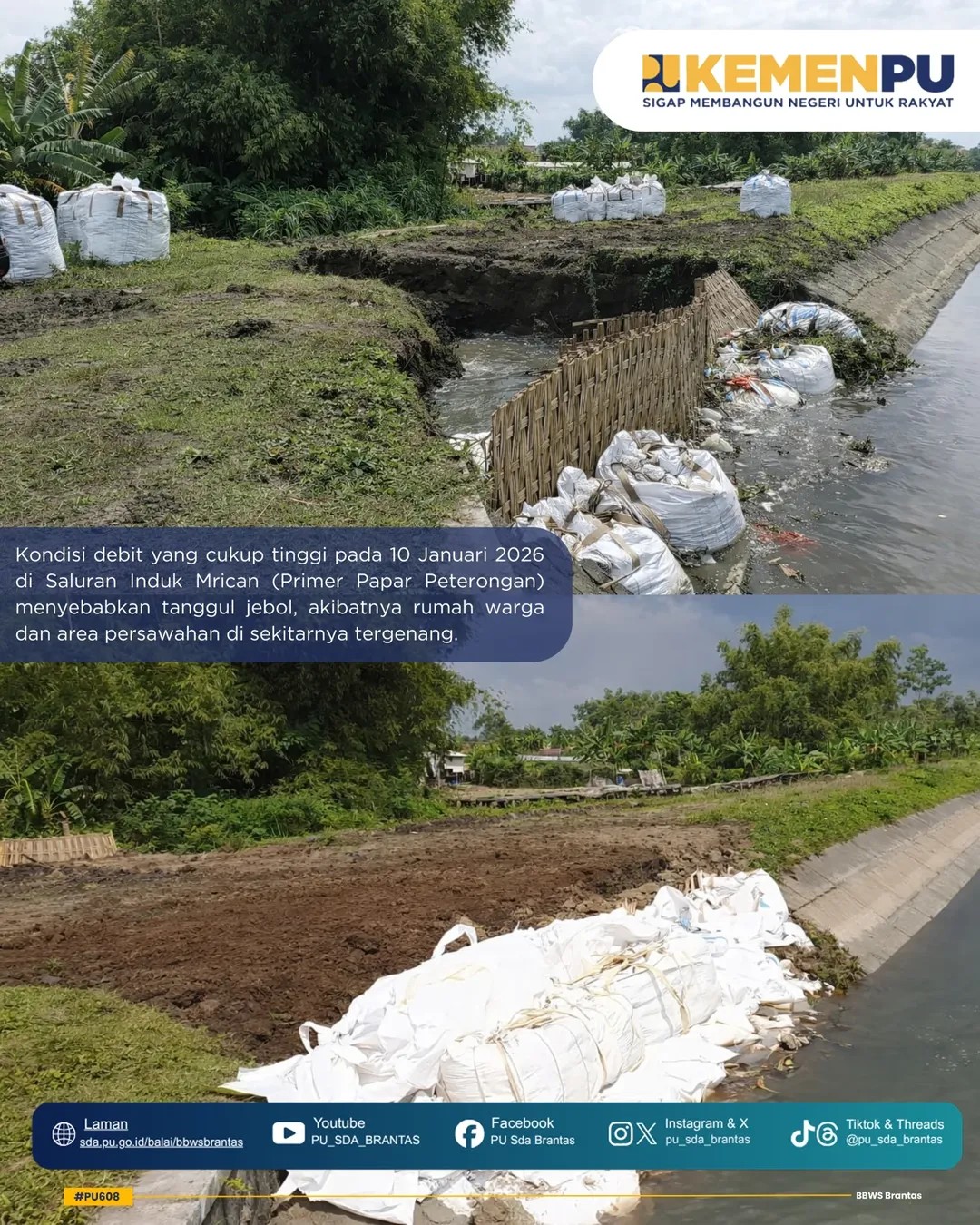 Untuk mencegah dampak meluas, BBWS Brantas melakukan perkuatan tanggul jebol di sisi kanan saluran. Langkah ini dilakukan sebagai upaya menjaga fungsi saluran irigasi sekaligus melindungi masyarakat dan lahan pertanian.