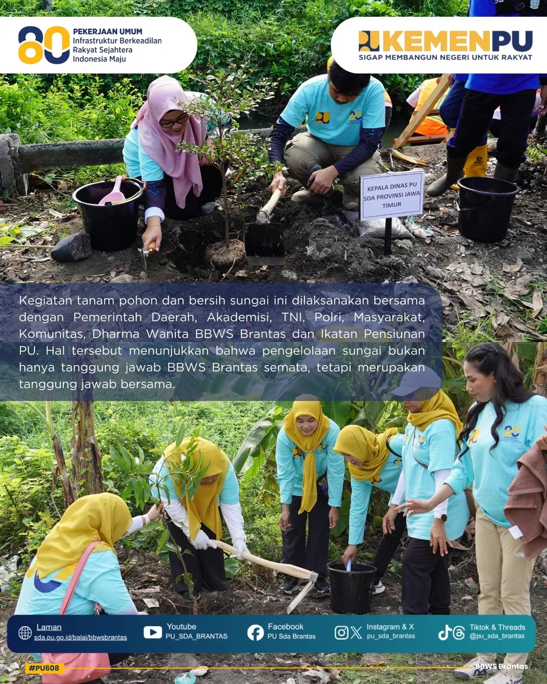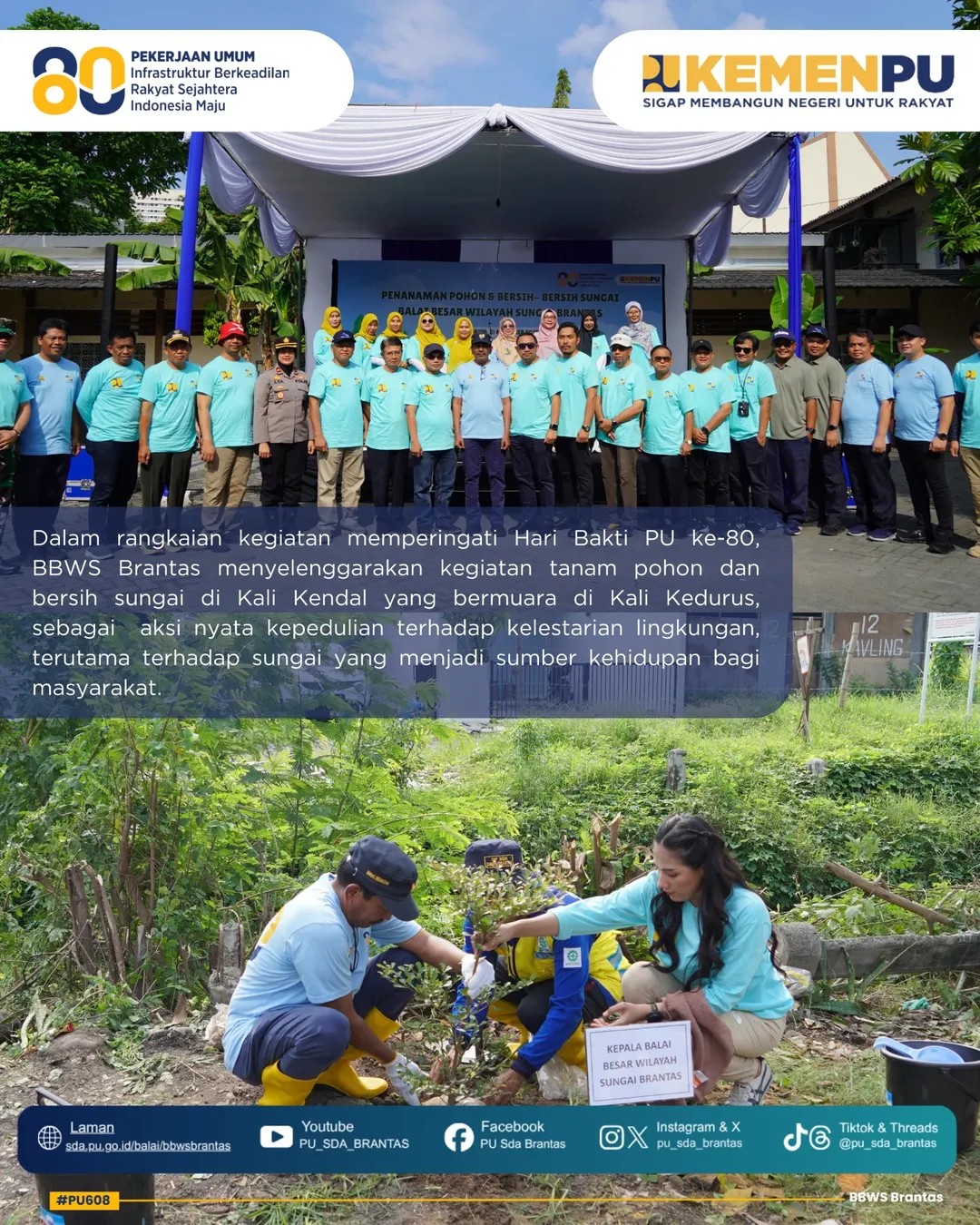 BBWS Brantas bersama Pemerintah Daerah, Akademisi, TNI, Polri, Masyarakat, Komunitas, Dharma Wanita BBWS Brantas dan Ikatan Pensiunan PU turun langsung dalam kegiatan Tanam Pohon dan Bersih Sungai di Kali Kendal yang bermuara di Kali Kedurus, Surabaya.