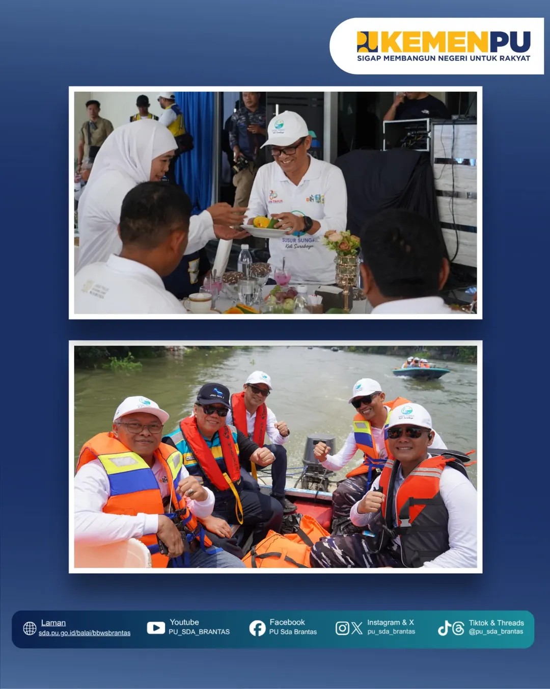 Dalam kegiatan susur sungai menggunakan perahu, Kepala BBWS Brantas Muhammad Noor mendampingi Gubernur Jawa Timur bersama Wali Kota Surabaya, Bupati Sidoarjo, Komandan Pasmar II, Kepala DLH Jawa Timur, dan Direksi PJT I. Kolaborasi lintas lembaga ini menjadi bentuk nyata komitmen bersama dalam menjaga keseimbangan lingkungan dan keberlanjutan sumber daya air di Wilayah Sungai (WS) Brantas.