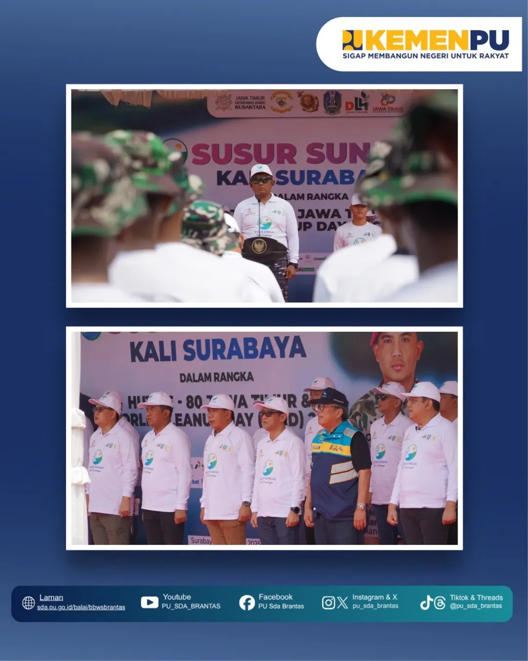 Surabaya, 19 Oktober 2025 — Kepala Balai Besar Wilayah Sungai (BBWS) Brantas, Muhammad Noor, turut serta dalam kegiatan Susur Sungai Brantas (Kali Surabaya) yang dipimpin langsung oleh Gubernur Jawa Timur dan Komandan Pasmar II (mar) serta diikuti oleh sejumlah pejabat daerah serta instansi terkait, pada kegiatan yang berlangsung di Kawasan Warugunung hingga Kantor PJT I Gunungsari, Surabaya.