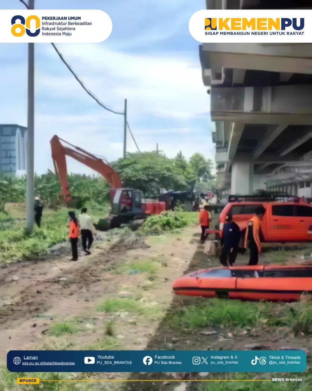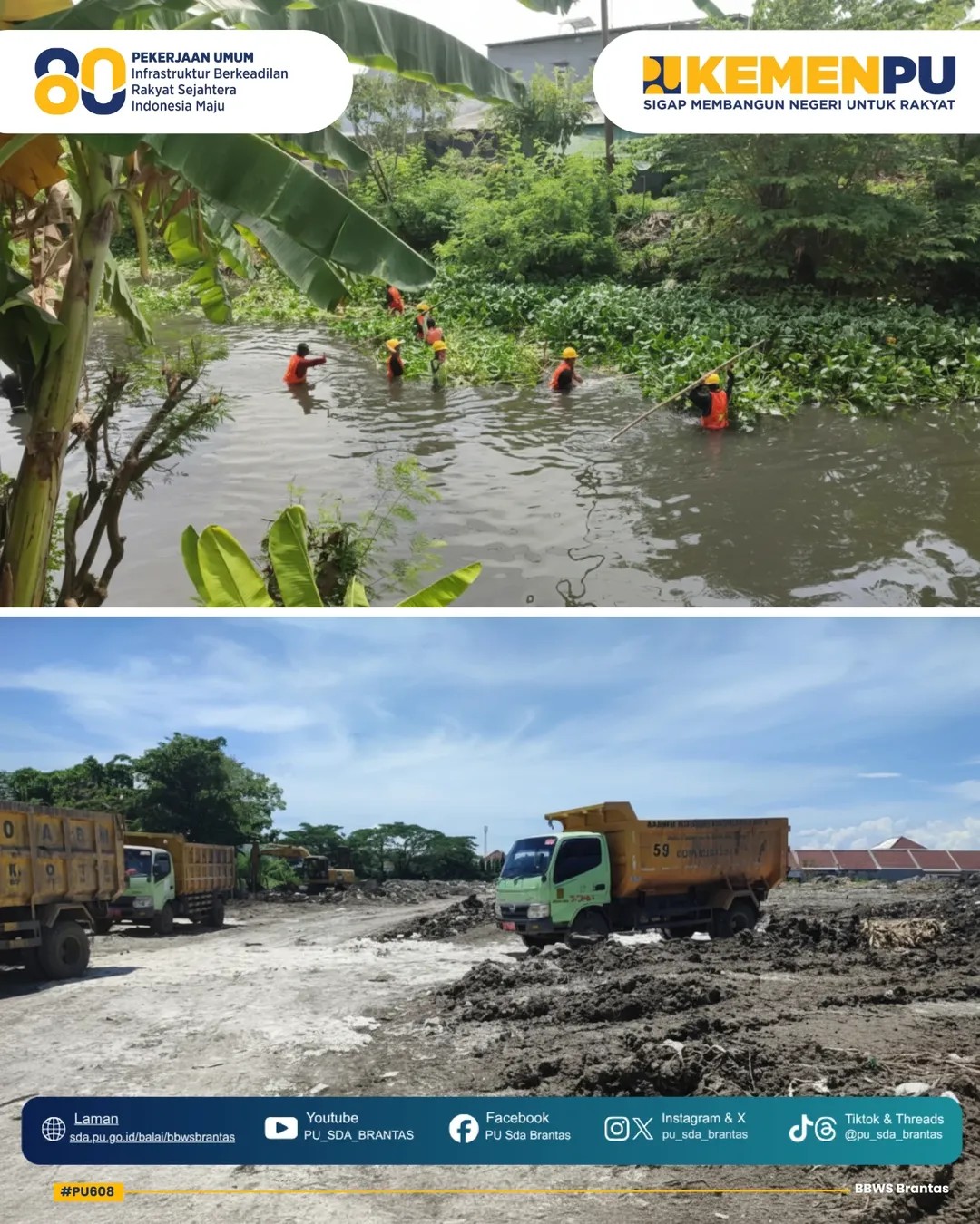 Kegiatan ini difokuskan pada pembersihan eceng gondok yang menumpuk dan menghambat aliran air.