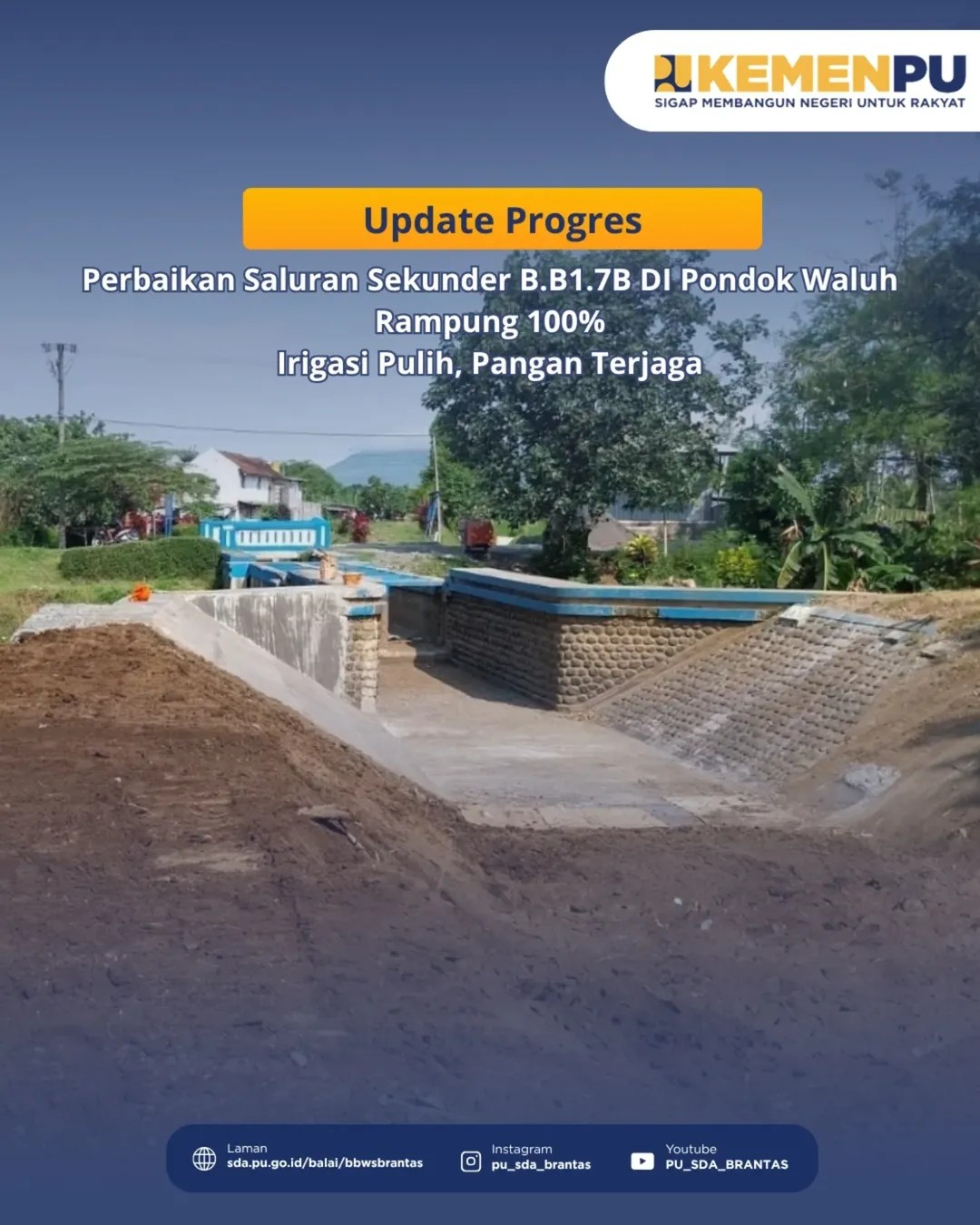 Jelang musim tanam, BBWS Brantas tuntaskan Perbaikan Saluran Sekunder Besini Daerah Irigasi (DI) Pondok Waluh Kabupaten Jember.