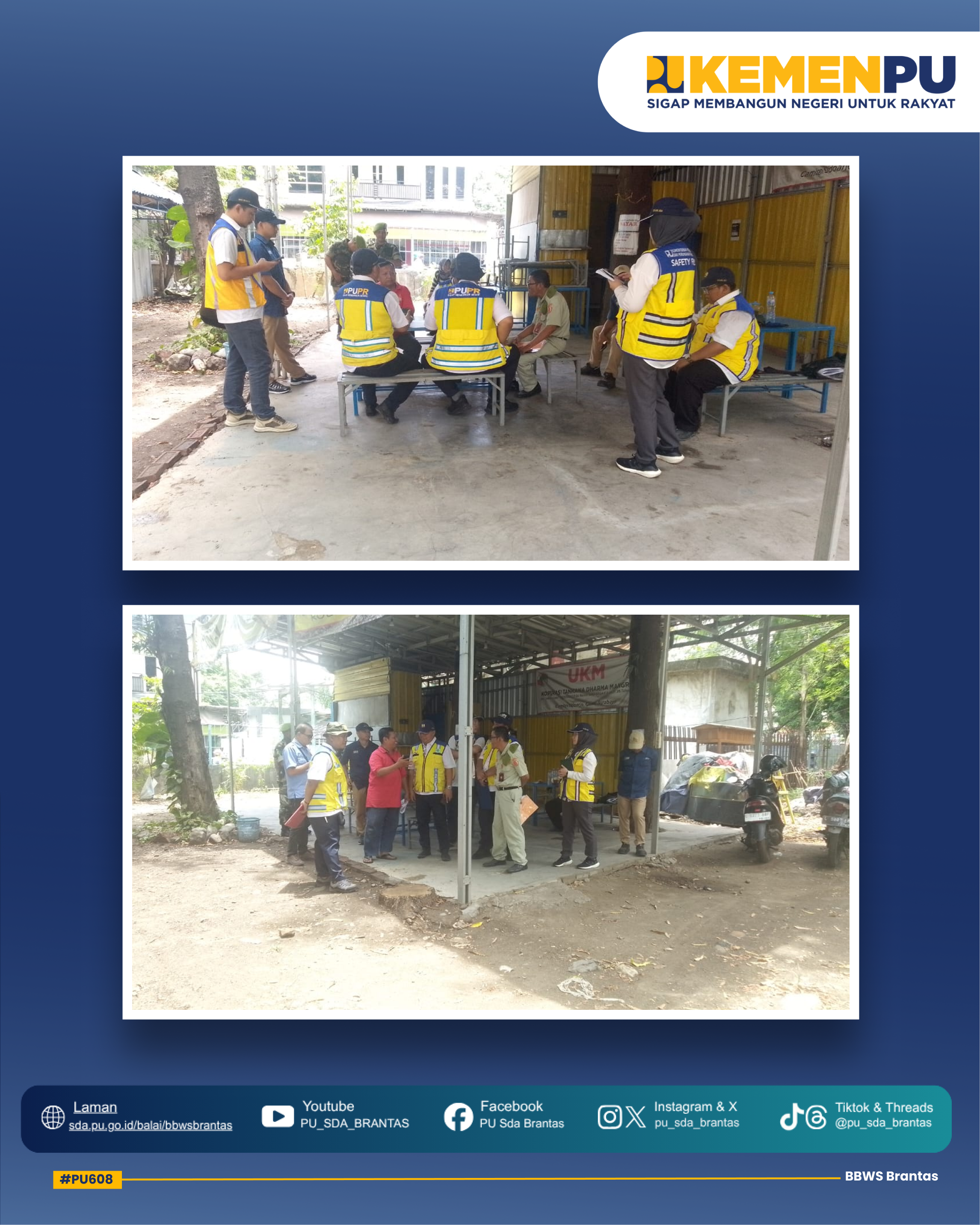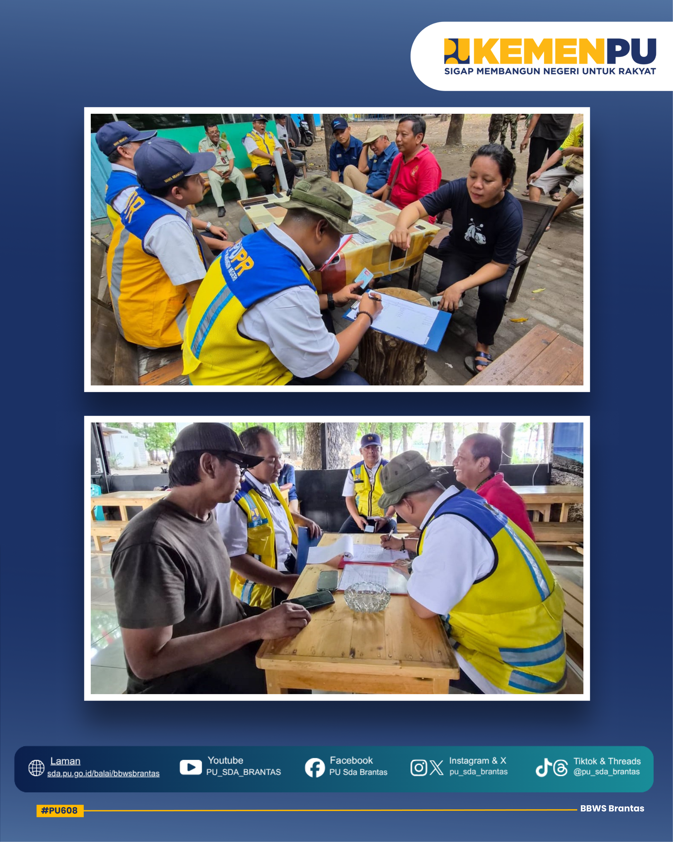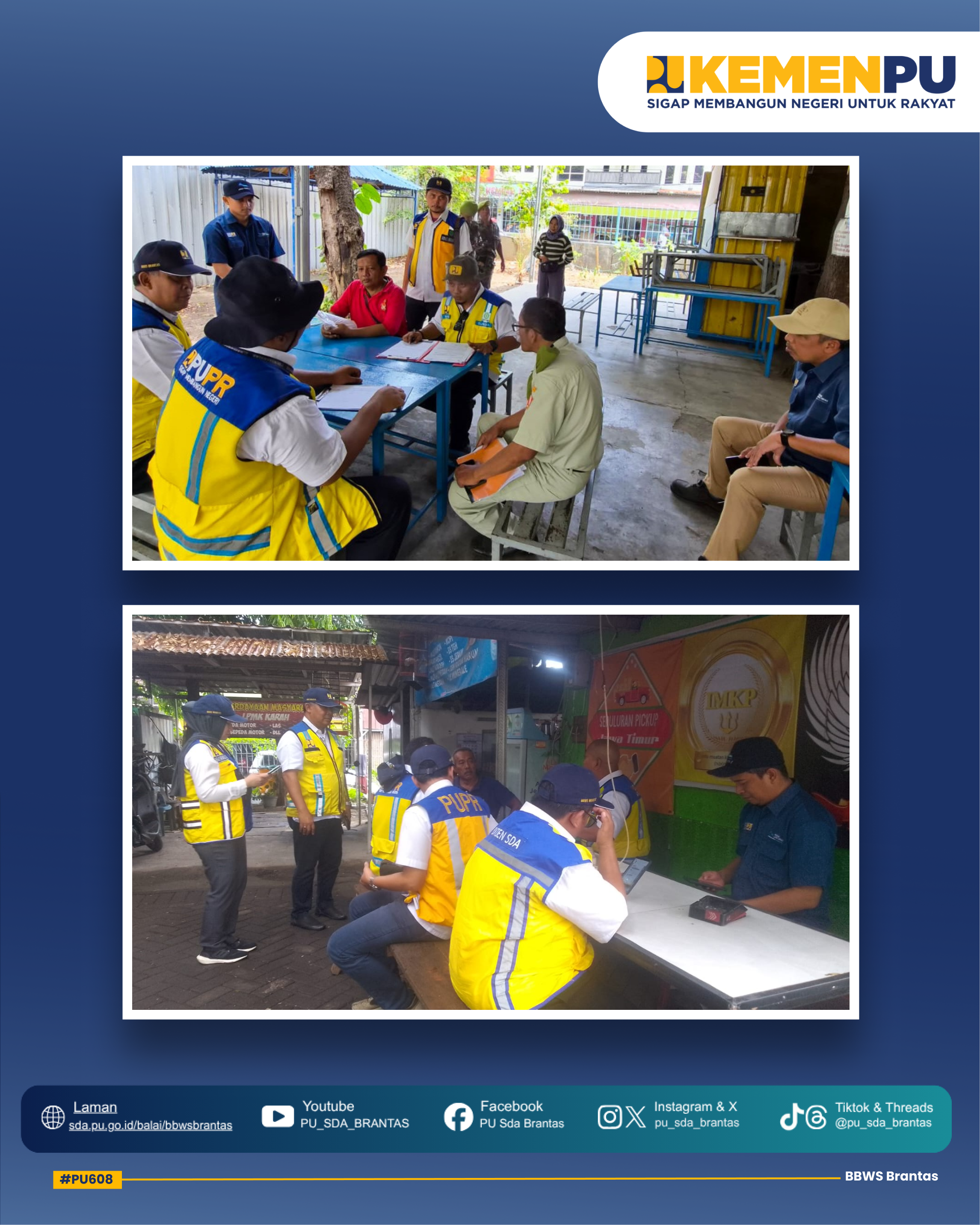 Melalui Tim Barang Milik Negara (BMN) bersama Tim Hukum dan Komunikasi Publik, BBWS Brantas melakukan pendataan terhadap bangunan liar yang berada di sekitar Kali Surabaya Rolak Gunungsari, Surabaya (21/10) bersama perwakilan dari Perum Jasa Tirta I yang turut mendampingi kegiatan ini.