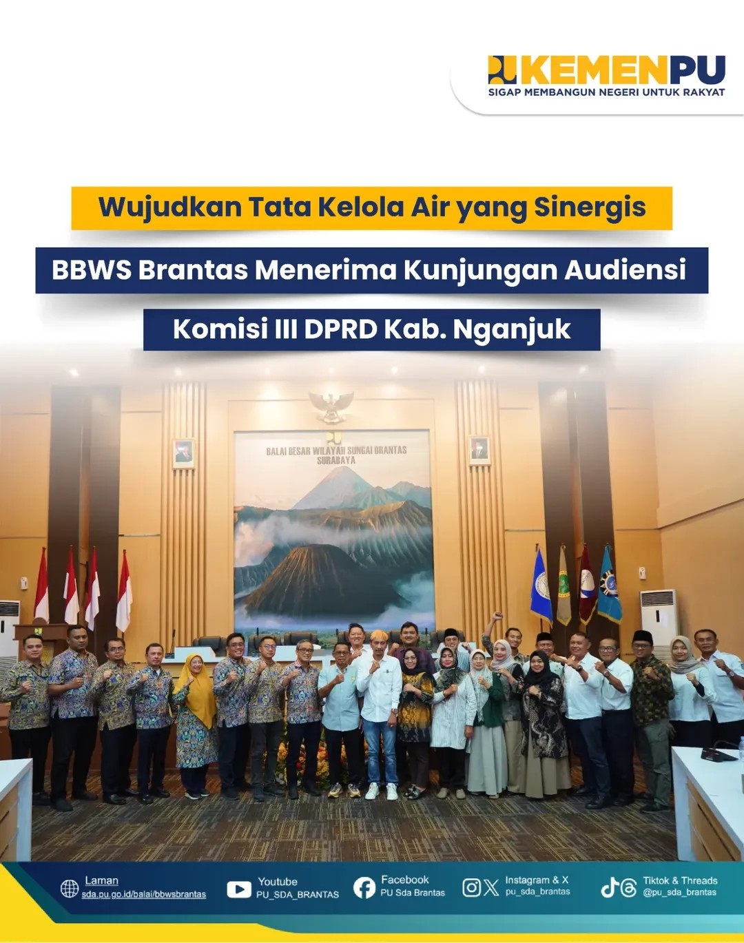 Surabaya – BBWS Brantas menerima kunjungan audiensi Komisi III DPRD Kab. Nganjuk pada Rabu, 21 Januari 2026. Pertemuan ini merupakan bagian dari upaya sinergis...