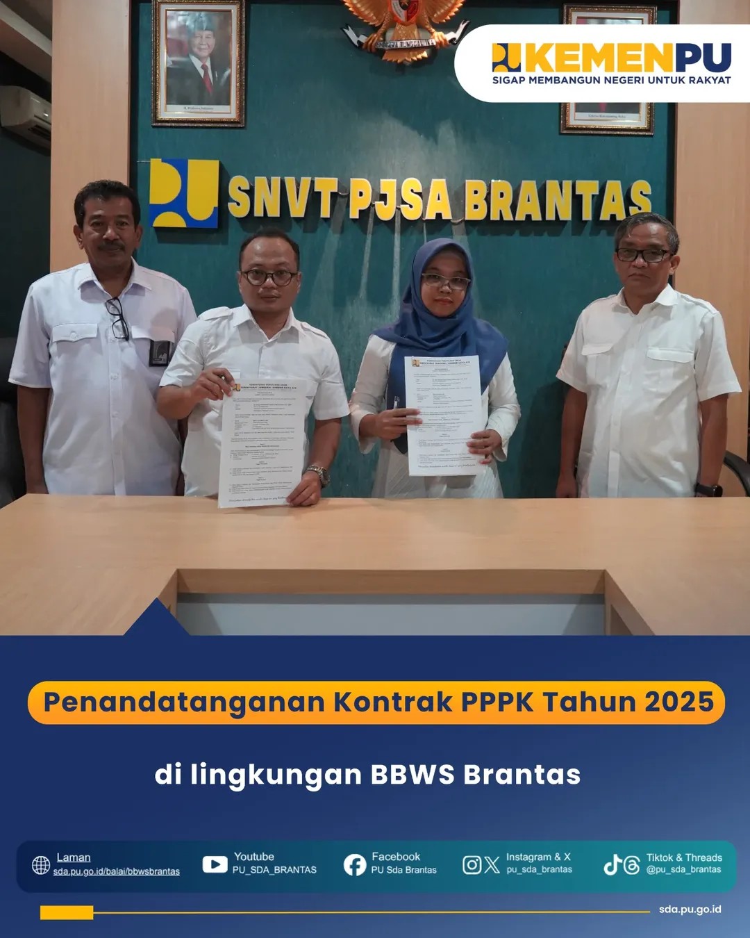 Surabaya, 9 Oktober 2025 – Balai Besar Wilayah Sungai (BBWS) Brantas melaksanakan kegiatan penandatanganan kontrak Pegawai Pemerintah dengan Perjanjian Kerja (P...