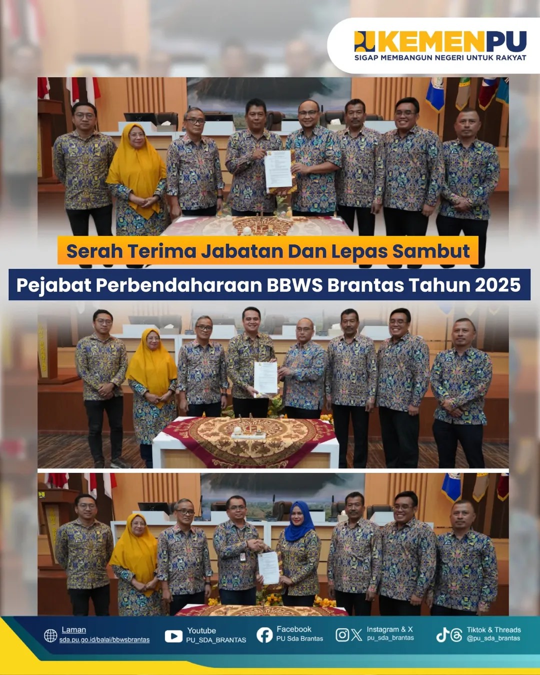 Surabaya, 5 November 2025 — Balai Besar Wilayah Sungai (BBWS) Brantas melaksanakan Serah Terima Pejabat Perbendaharaan Tahun Anggaran 2025 yang berlangsung di G...