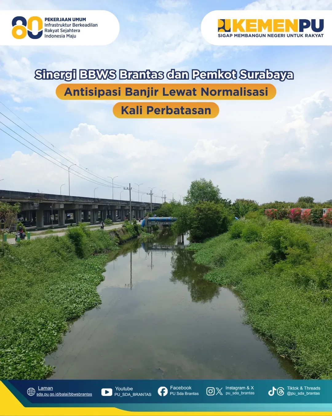 Upaya mengantisipasi potensi banjir BBWS Brantas bersama Pemkot Surabaya melakukan normalisasi di hilir Kali Perbatasan Kegiatan ini difokuskan pada pembersiha...