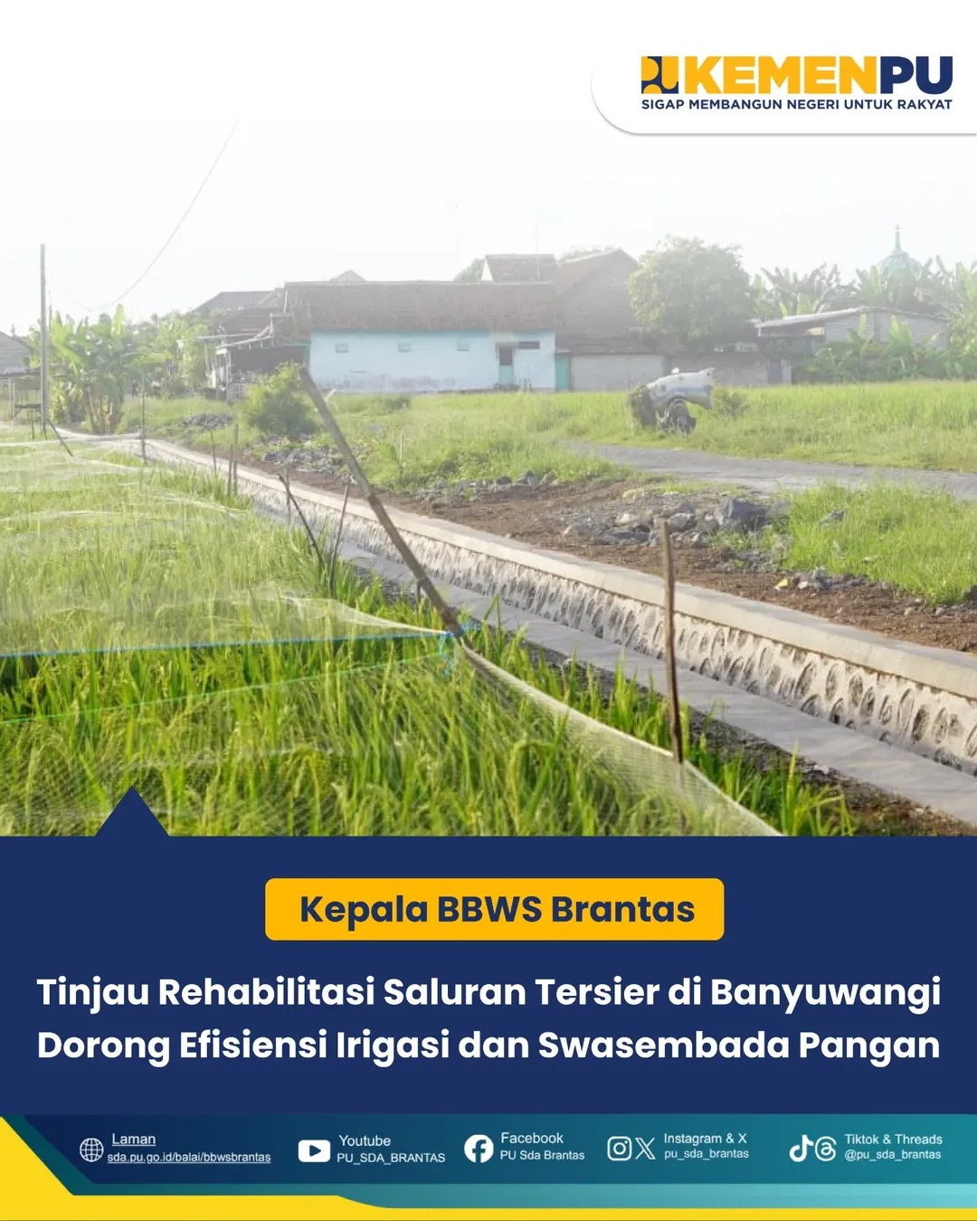 Kepala BBWS Brantas, Muhammad Noor, meninjau pelaksanaan Rehabilitasi Saluran Tersier di Desa Kebaman, Kecamatan Srono, Kabupaten Banyuwangi. Kegiatan ini mendu...