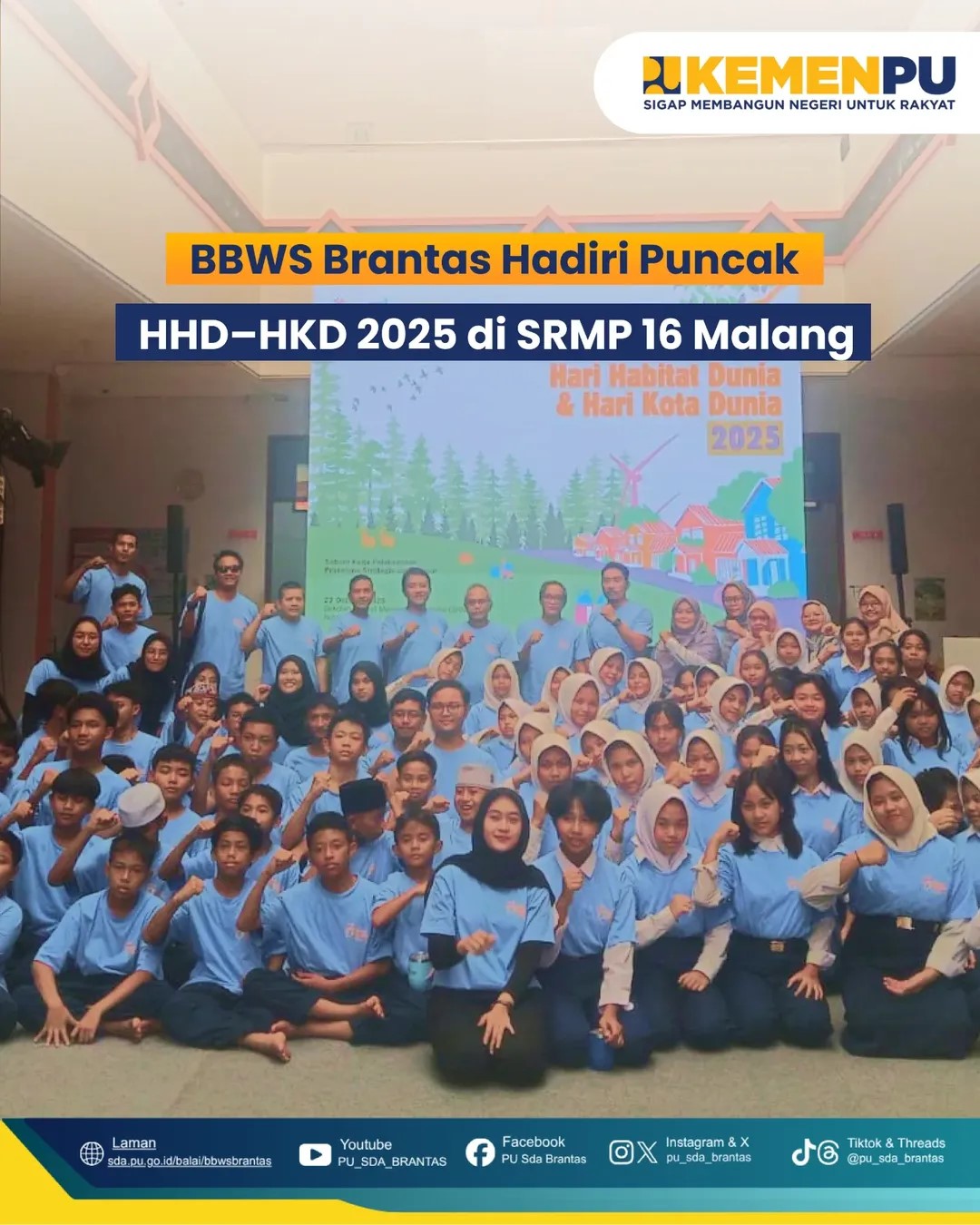 Kepala BBWS Brantas menghadiri acara puncak Hari Habitat Dunia dan Hari Kota Dunia (HHD–HKD) 2025 yang diselenggarakan di Sekolah Rakyat Menengah Pertama (SRMP)...