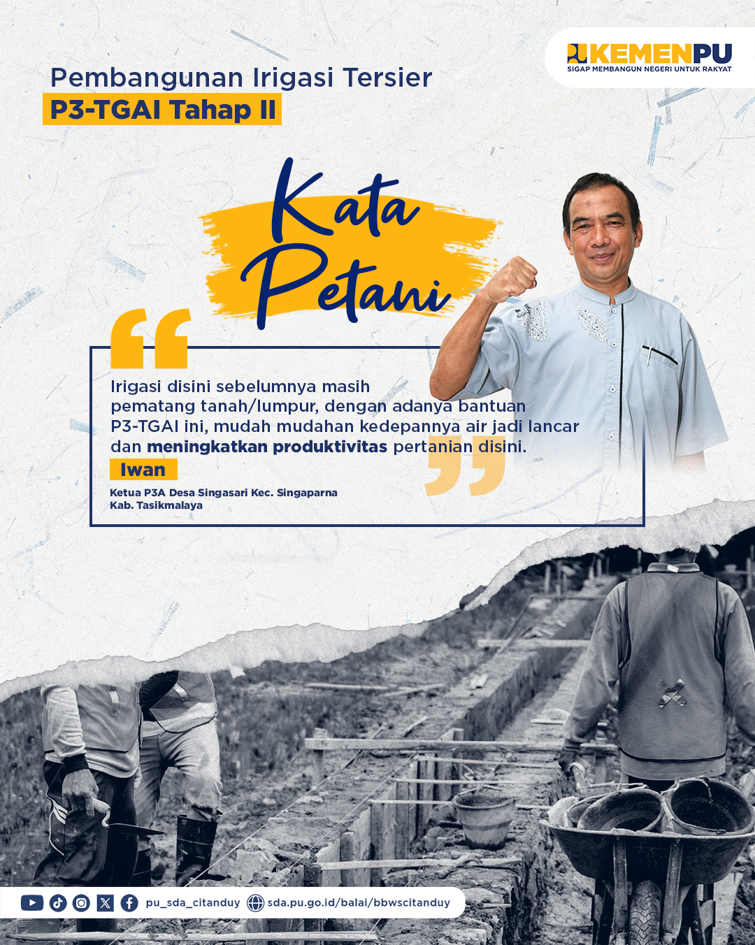 Sobat Citanduy, petani yang berdaya menjadi kunci tercapainya swasembada pangan. Melalui Program P3-TGAI Tahap II, semangat gotong royong terus diperkuat untuk menjaga kelancaran aliran air agar setiap tetesnya dapat mengairi lahan pertanian secara optimal dan mendukung kemandirian pangan.