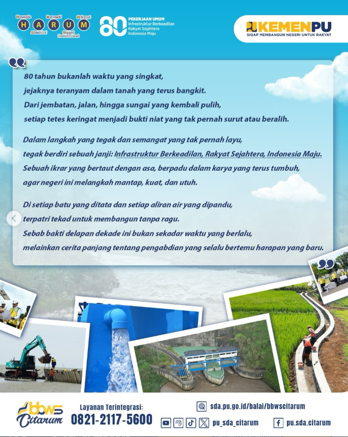 kemajuan bangsa. Selamat Hari Bakti PU ke-80 semoga semangat pengabdian ini
