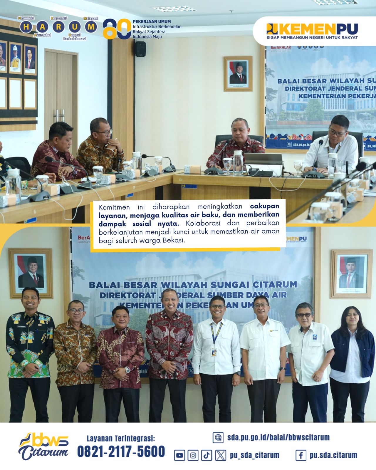 Melalui pembahasan relokasi intake SPAM Teluk Buyung menuju sumber air Kalimalang yang lebih andal, hingga rencana pembangunan SPAM Bekasi Timur sebagai proyek strategis daerah, BBWS Citarum terus mendukung upaya Pemerintah Kota Bekasi dalam memperkuat ketahanan layanan air minum.