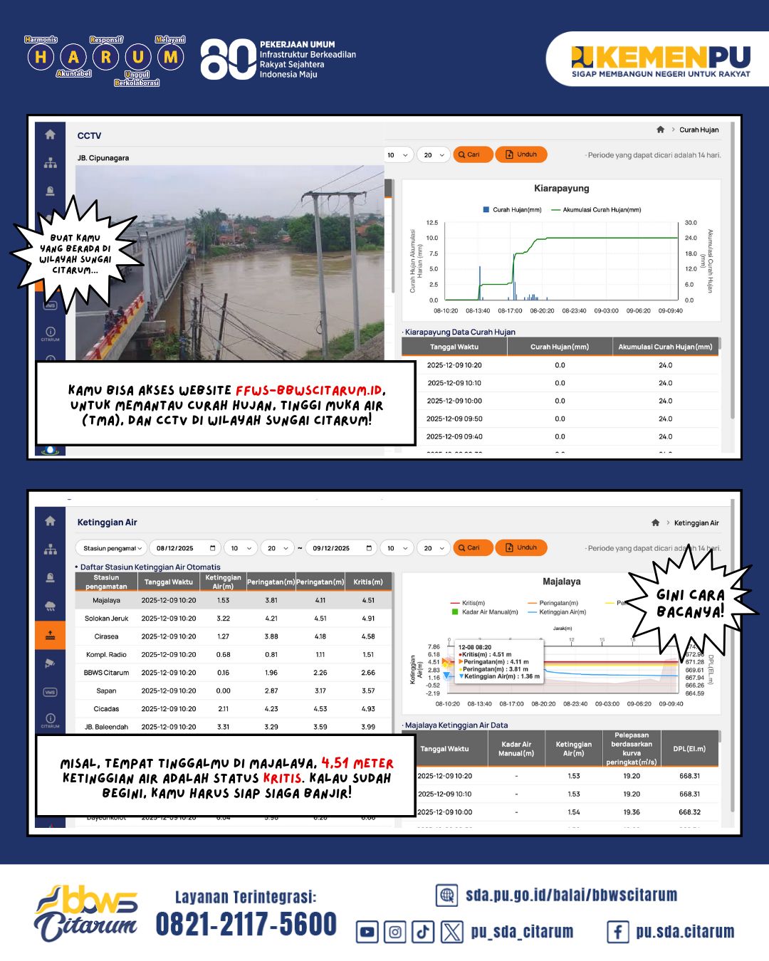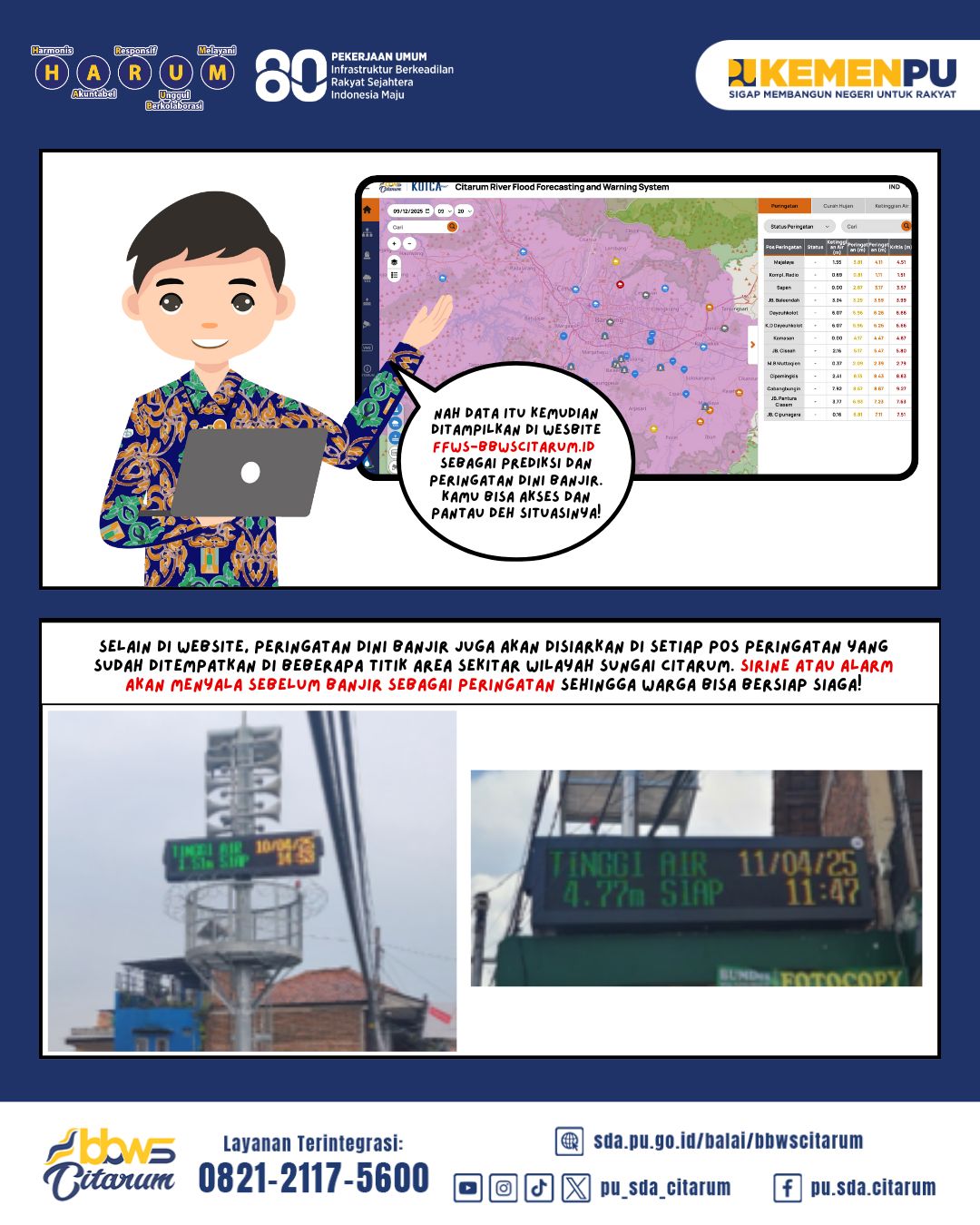 Selain website, program kerja sama antara pemerintah Indonesia dengan pemerintah Korea Selatan ini juga menghadirkan pos peringatan dini banjir sehingga warga bisa bersiap siaga menghadapi banjir! Yuk tetap tenang dan waspada untuk keselamatan #SobatCitarum dan keluarga🤍