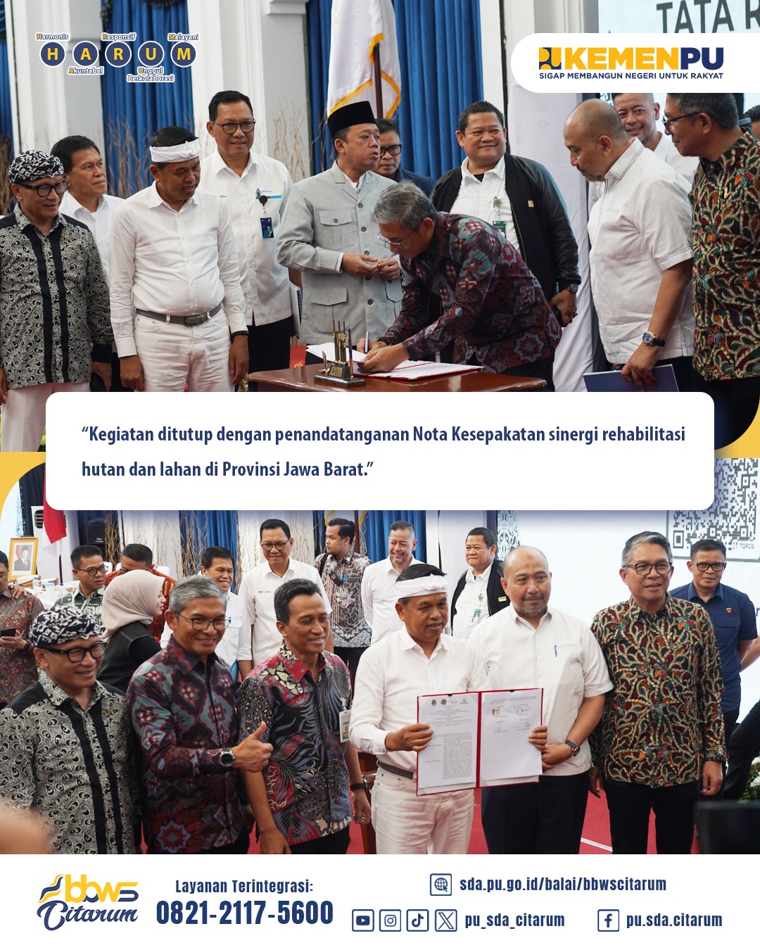 Rapat koordinasi ini diakhiri dengan penandatanganan Nota Kesepakatan antara Pemerintah Daerah Provinsi Jawa Barat, Kementerian ATR/BPN, PT Perkebunan Nusantara I, dan Perusahaan Umum (Perum) Kehutanan Negara tentang Sinergi Pelaksanaan Rehabilitasi Hutan dan Lahan di Provinsi Jawa Barat.
