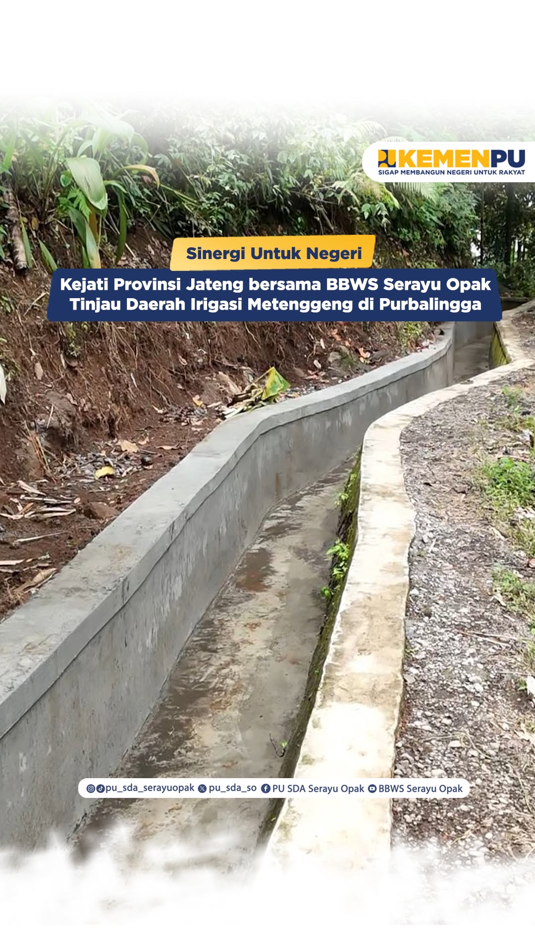 Sinergi untuk Negeri: Kejati Provinsi Jateng Tinjau Daerah Irigasi Metenggeng di Purbalingga. Kegiatan monitoring dan evaluasi oleh Kejaksaan Tinggi Jawa Tengah terhadap pelaksanaan Pekerjaan Inpres Nomor 2 Tahun 2025 Tahap II yang dilaksanakan oleh BBWS Serayu Opak, sebagai bentuk sinergi pengawasan dalam memastikan pembangunan infrastruktur irigasi berjalan tepat sasaran, transparan, dan berkelanjutan demi mendukung ketahanan serta swasembada pangan nasional.