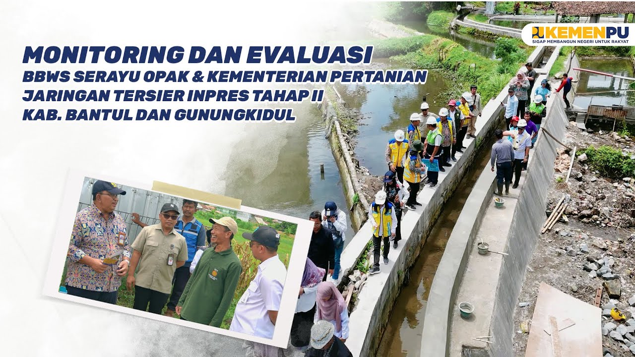 Dalam rangka mendukung Instruksi Presiden Nomor 2 Tahun 2025 tentang percepatan pembangunan dan rehabilitasi jaringan irigasi, BBWS Serayu Opak bersama Kementerian Pertanian melaksanakan kegiatan monitoring dan evaluasi (monev) di Kabupaten Bantul dan Gunungkidul. Sinergi antara Kementerian PU dan Kementerian Pertanian diharapkan memperkuat swasembada pangan nasional serta meningkatkan kesejahteraan petani Indonesia.