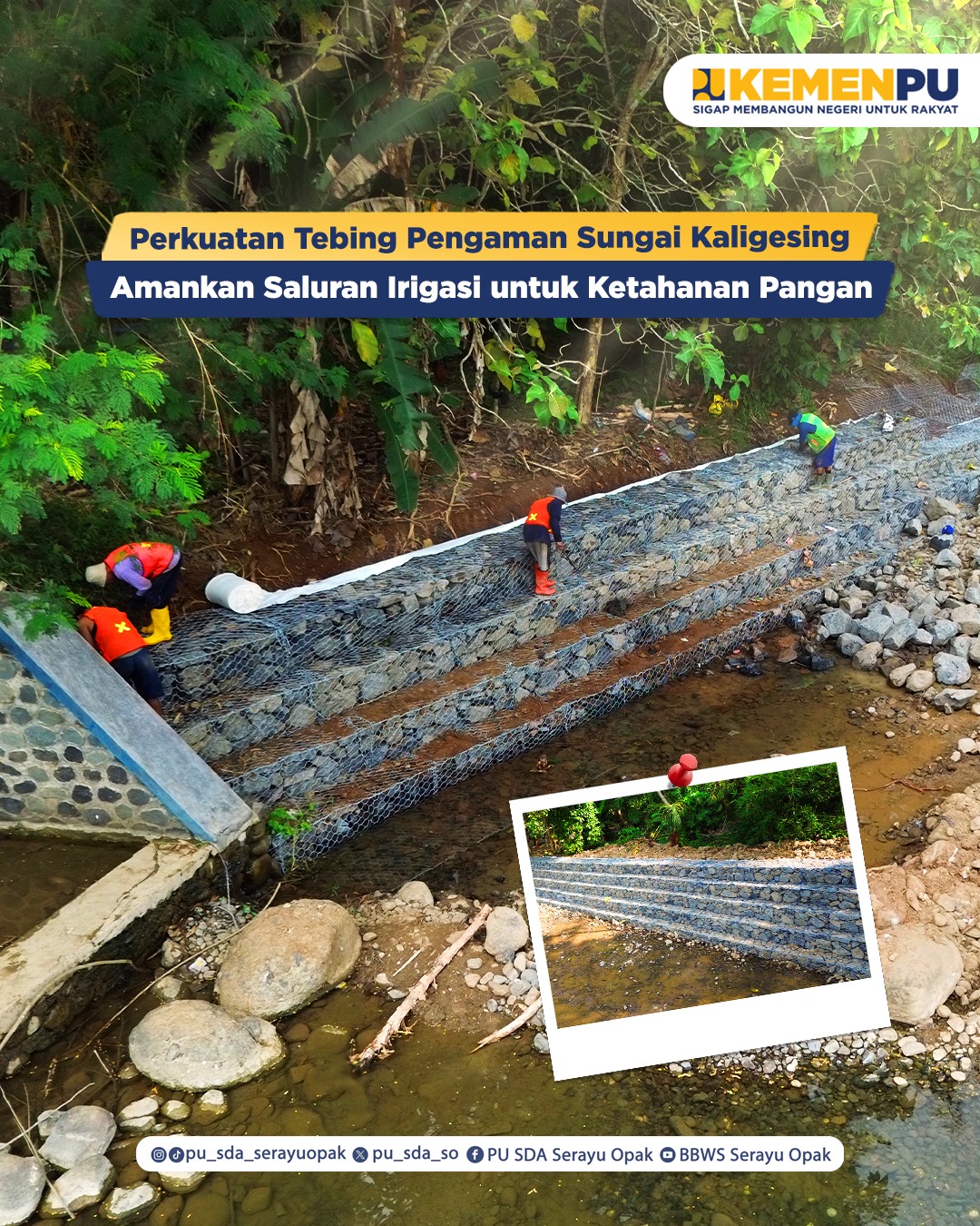 Guna memberi rasa aman terkait saluran irigasi dan sebagai bentuk preventif antisipasi bencana banjir, Balai Besar Wilayah Sungai (BBWS) Serayu Opak melaksanakan perkuatan tebing pengaman Sungai Kaligesing di Kabupaten Purworejo.