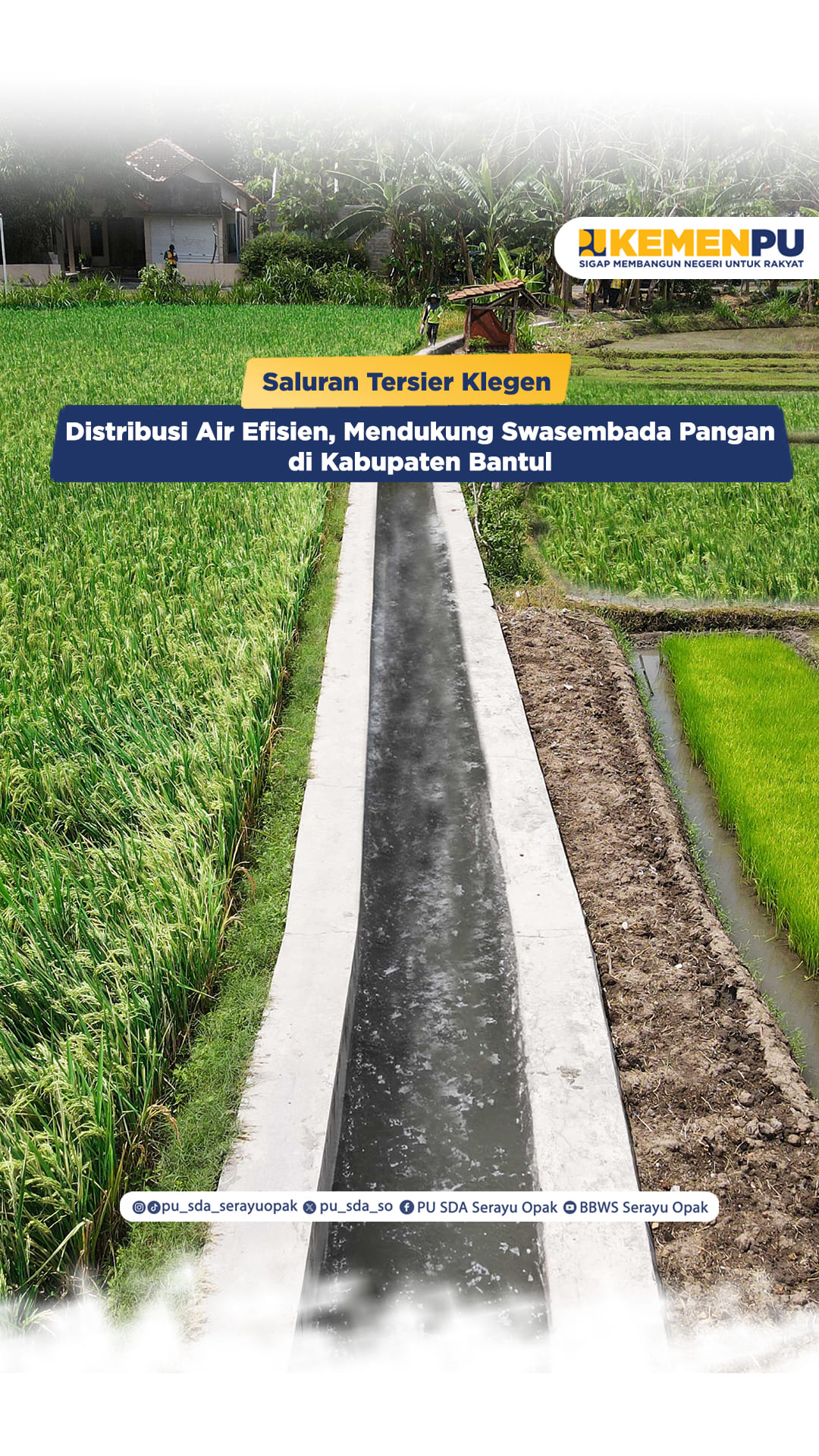 Inisiatif ini merupakan bagian dari upaya berkelanjutan Balai Besar Wilayah Sungai Serayu Opak dalam mendukung ketahanan pangan nasional melalui pengelolaan infrastruktur irigasi yang efisien dan berkeadilan. Dari saluran tersier Klegen mengalir semangat besar menuju swasembada pangan—air yang menumbuhkan harapan, menggerakkan ekonomi desa, dan menghidupi bangsa.