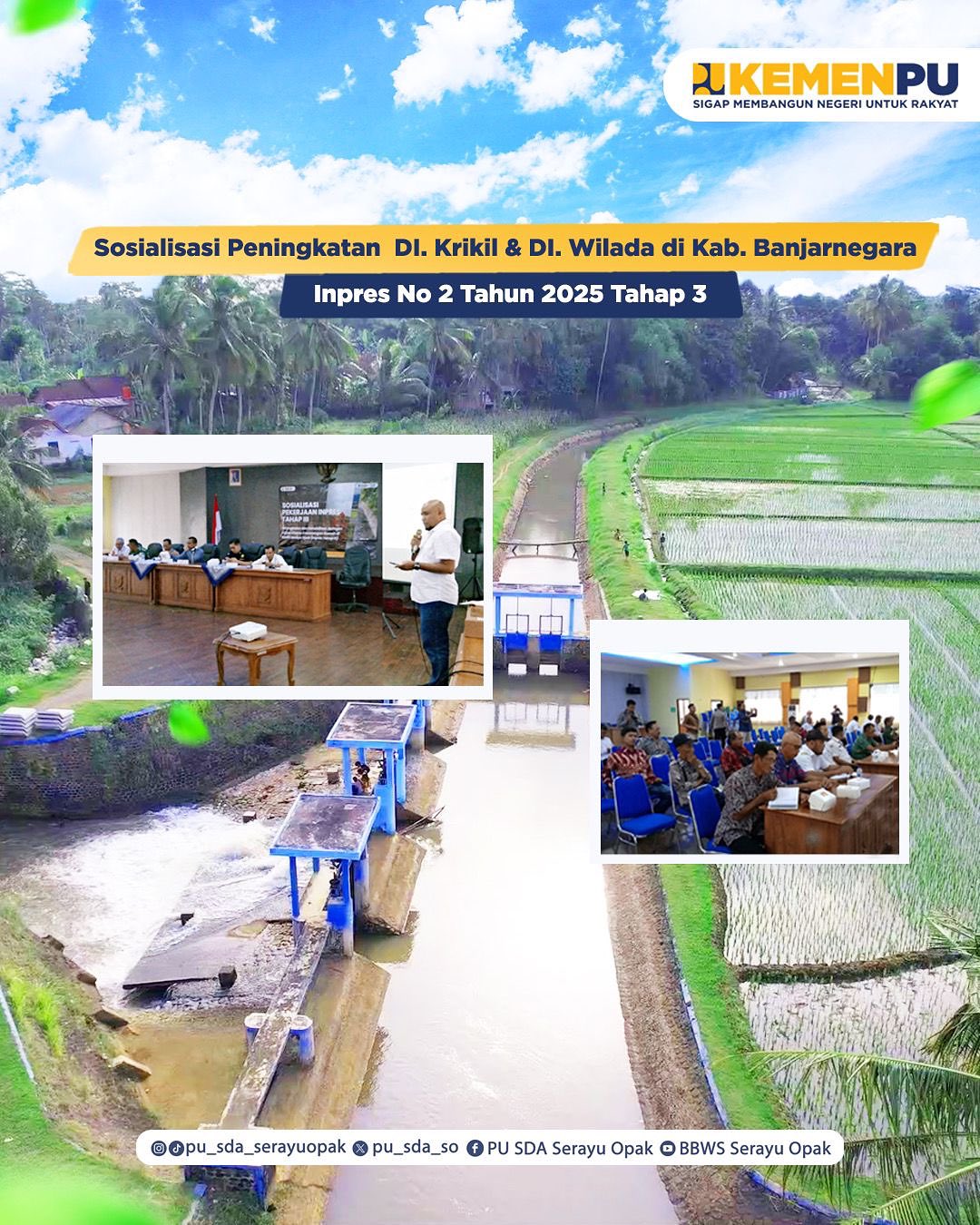 Kementerian Pekerjaan Umum (PU) terus merelisasikan Instruksi Presiden No 2 Tahun 2025 untuk mendukung Swasembada Pangan. BBWS Serayu Opak melakukan Sosialisasi Pelaksanaan Inpres 2/2025 tahap III di Kabupaten Banjarnegara.