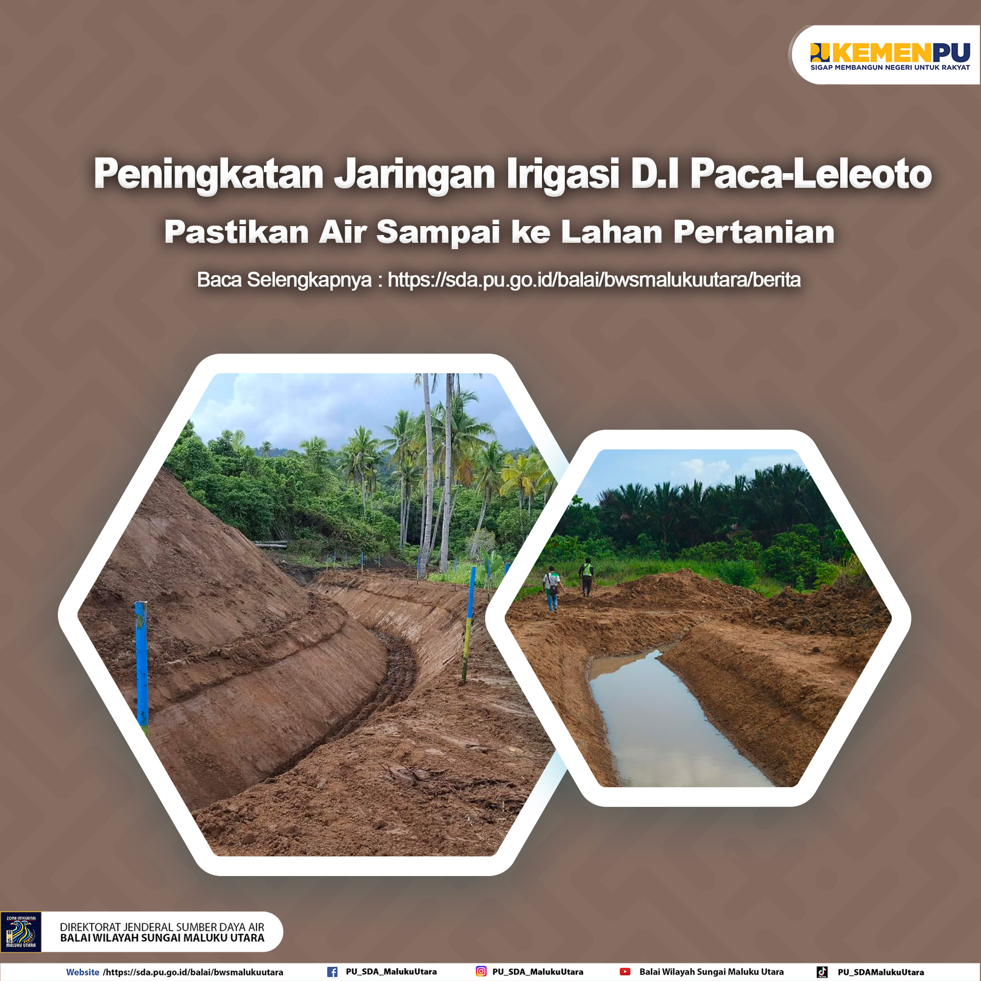 Hingga kini, pekerjaan masih berjalan sesuai jadwal dengan progres konstruksi yang terus menunjukkan peningkatan. Setelah rampung, jaringan irigasi D.I Paca-Leleoto akan menjadi infrastruktur penting yang membantu petani dalam menjaga ketersediaan air, meningkatkan hasil panen, serta memperkuat sektor pertanian di Halmahera Utara.