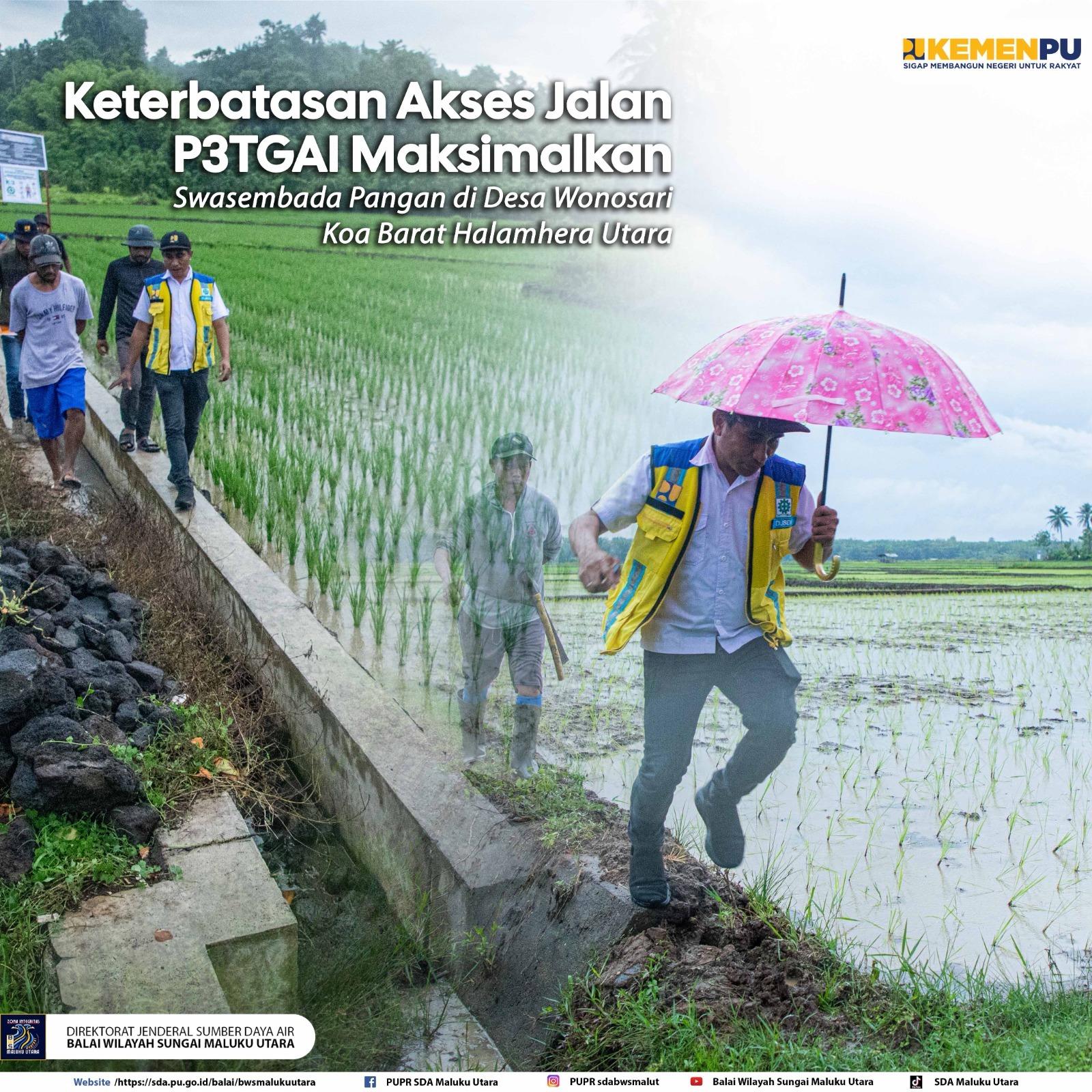 Meskipun menghadapi keterbatasan akses jalan, semangat petani di Desa Wonosari, Kecamatan Kao Barat, Kabupaten Halmahera Utara, tak pernah surut untuk terus bertani. Balai Wilayah Sungai (BWS) Maluku Utara turut hadir mendorong semangat tersebut melalui pelaksanaan kegiatan Program Percepatan Peningkatan Tata Guna Air Irigasi (P3TGAI) guna memperkuat produktivitas dan ketahanan pangan masyarakat setempat.
