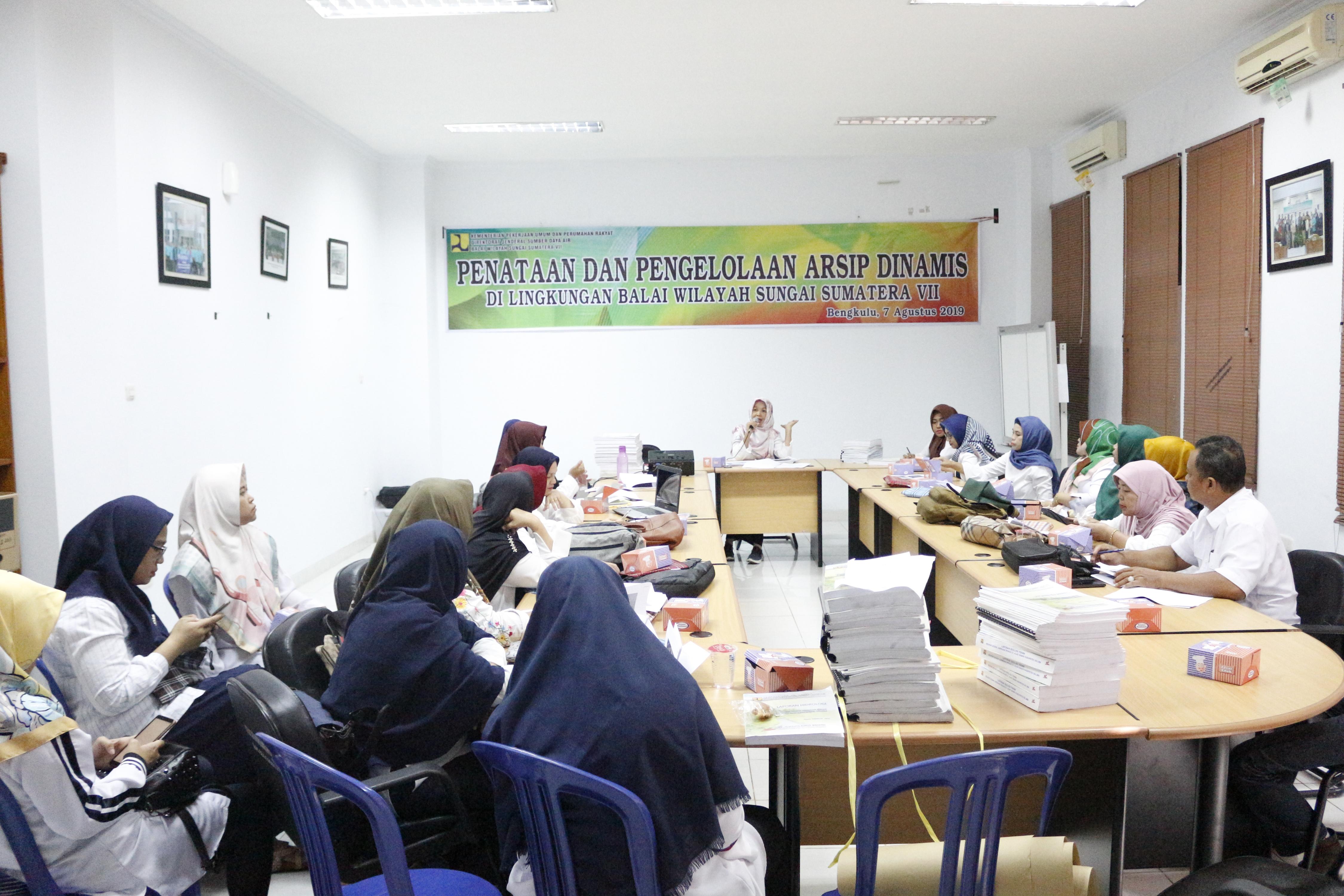 Rabu 7 Agustus 2019, Balai Wilayah Sungai Sumatera VII melakukan kegiatan pemberkasan arsip aktif dan penataan arsip inaktif sesuai dengan kaidah kearsipan yang berlaku dengan mengacu pada Peraturan Menteri PUPR Nomor 23 Tahun 2016 tentang Penyelenggaraan Arsip Dinamis Kementerian PUPR.