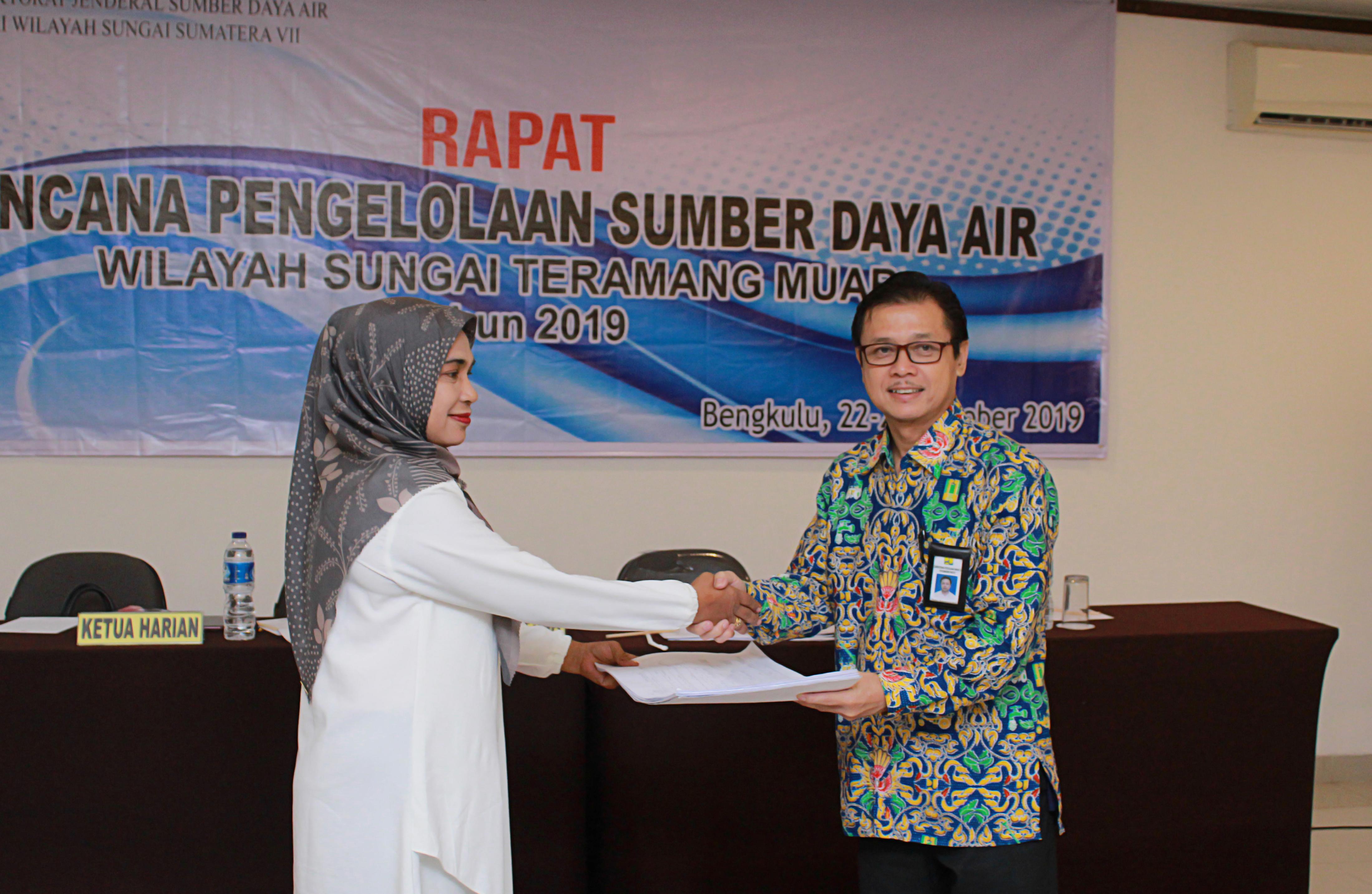 Setelah dilakukan pelantikan Tim Koordinasi Pengelolaan Sumber Daya Air (TKPSDA) Wilayah Sungai Teramang Muar yang dibentuk berdasarkan Keputusan Menteri PUPR No. 178/KPTS/M/2019 pada tanggal 28 Juni 2019 yang lalu, maka pada hari Selasa – Rabu (22-23/10) dilaksanakan Rapat Rencana Pengelolaan Sumber Daya Air WS Teramang Muar Tahun 2019 bertempat di ruang rapat Hotel Amaris Bengkulu.