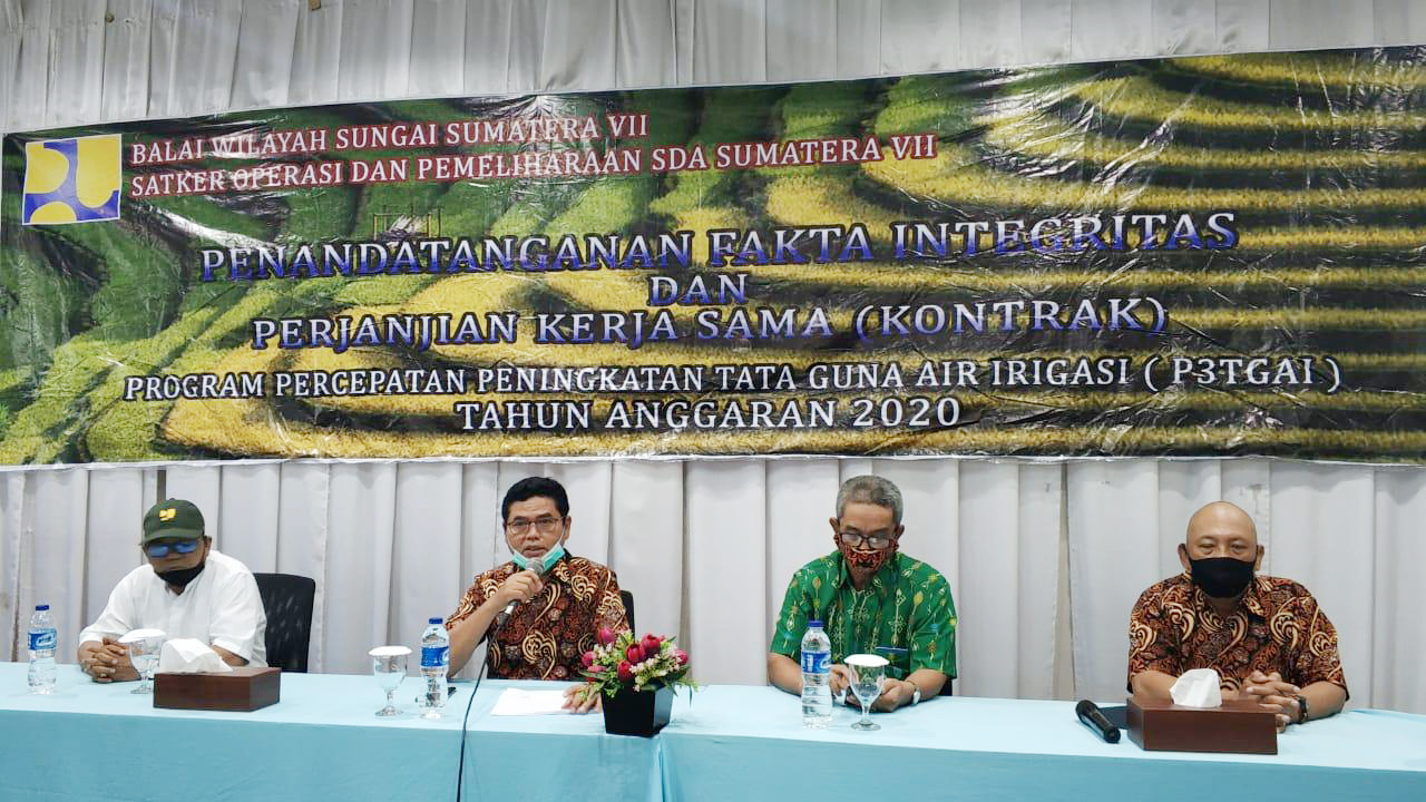 Sehubungan akan dilaksanakannya kegiatan P3TGAI Tahap IV tahun anggaran 2020, maka dilakukan Penandatanganan Pakta Integritas dan Perjanjian Kerja Sama (PKS) P3TGAI pada hari Jumat (11/9) bertempat di ruang rapat Hotel Nala Sea Side Bengkulu.