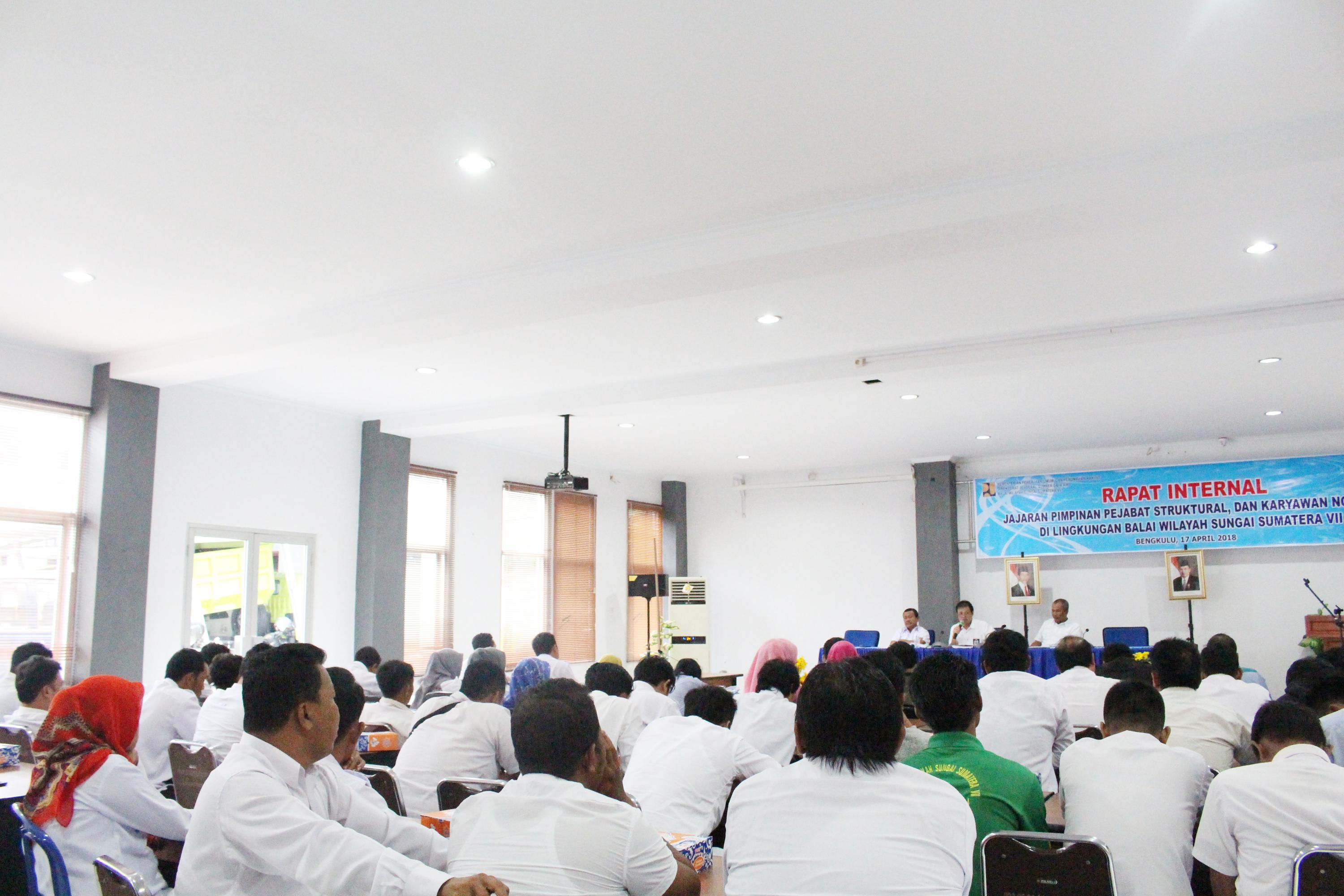 Balai Wilayah Sungai Sumatera VII melalui Sub Bagian Tata Usaha menggelar rapat Internal jajaran pimpinan Pejabat Struktural dan Karyawan Non PNS sekaligus penandatanganan dokumen kontrak Karyawan Non PNS Tahun Anggaran 2018. Acara berlangsung di Aula Teramang Muar-Nasal Padang Guci pada tanggal 17 April 2018.