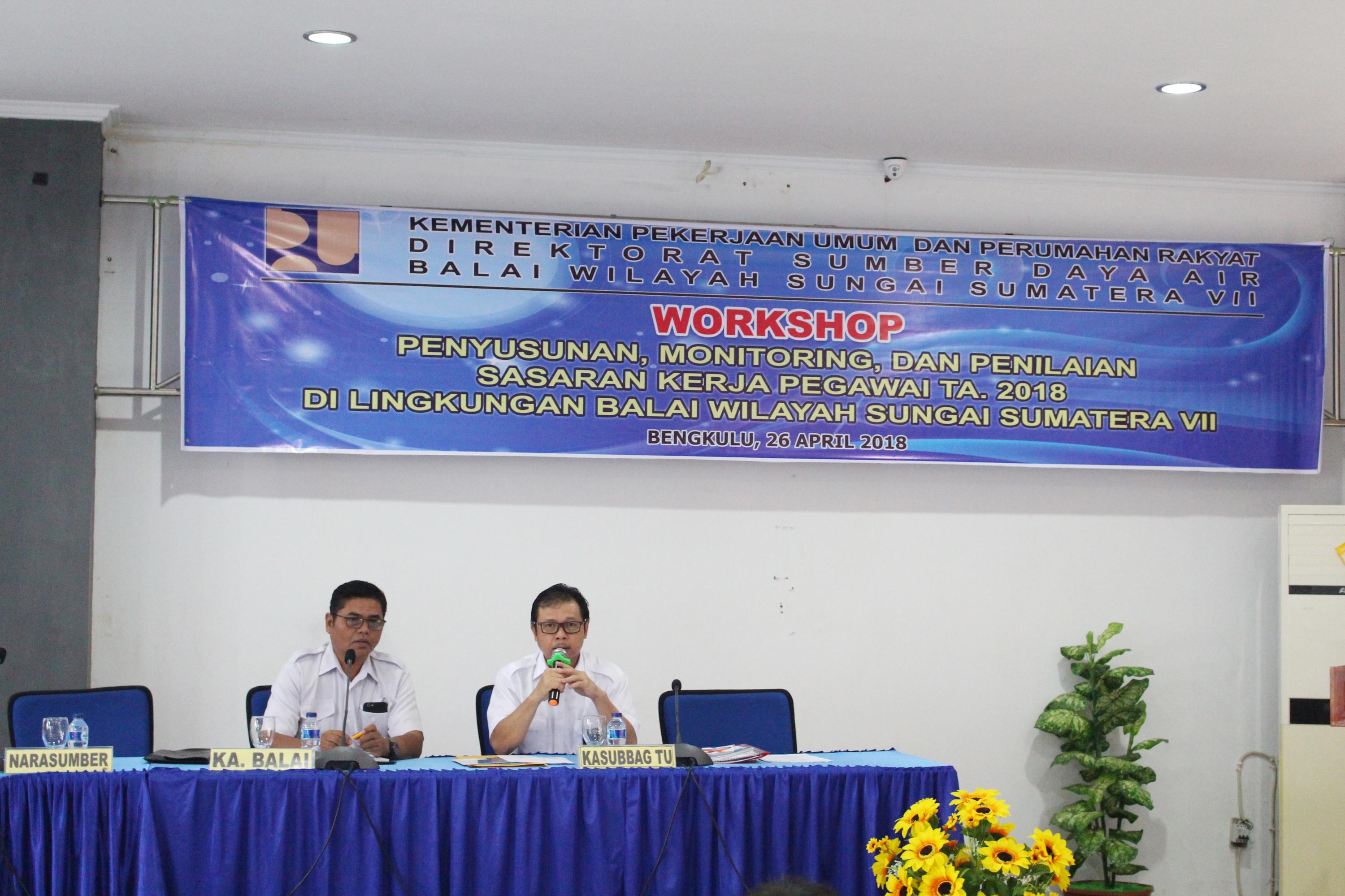 Dalam menindaklanjuti nota kesepakatan desk bagian Kepegawaian, Organisasi dan Tatalaksana di Depok pada tanggal 2-4 April 2018 mengenai pembahasan isu dan permasalahan pengelolaan kepegawaian dan ortala terkait inputting target kinerja Sasaran Kerja Pegawai (SKP) Tahun 2018 melalui e-kinerja, Balai Wilayah Sungai Sumatera menggelar acara penyusunan, monitoring dan penilaian SKP pada 26 April 2018.