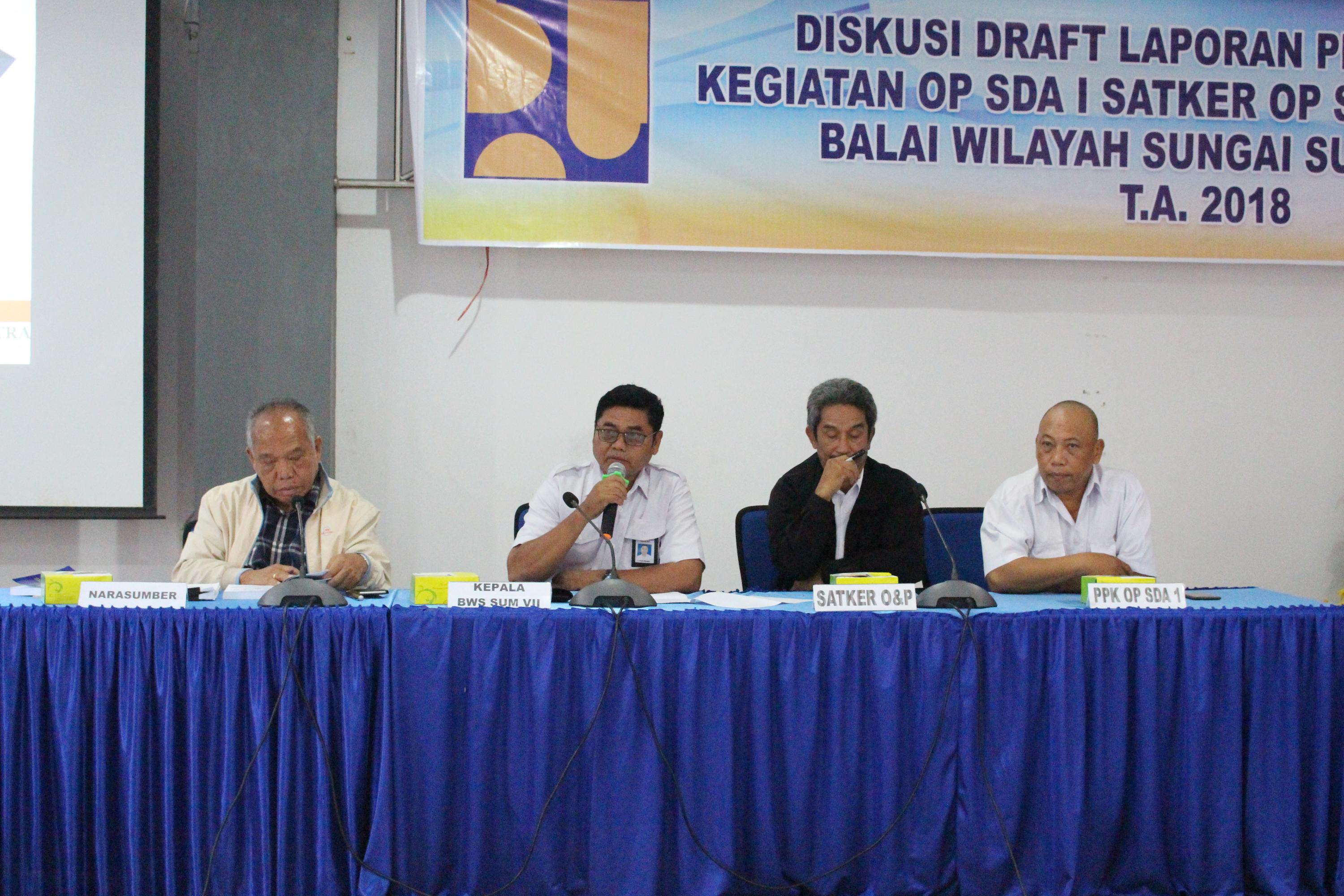 Direksi Operasi dan Pemeliharaan (O&P) Sumber Daya Air I Sumatera VII menyelenggarakan diskusi draft laporan pendahuluan jasa konsultansi Tahun Anggaran 2018 pada Senin 14 Mei 2018 di Aula Teramang Muar-Nasal Padang Guci Kantor BWS Sumatera VII.