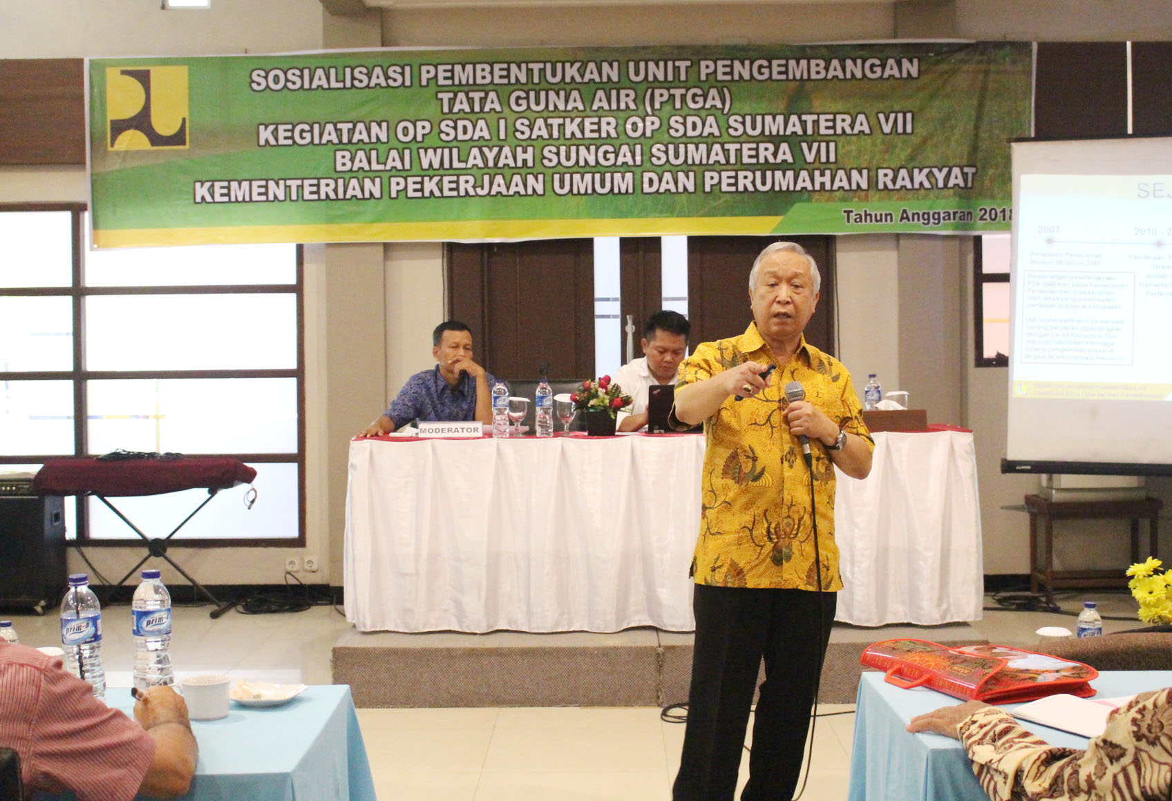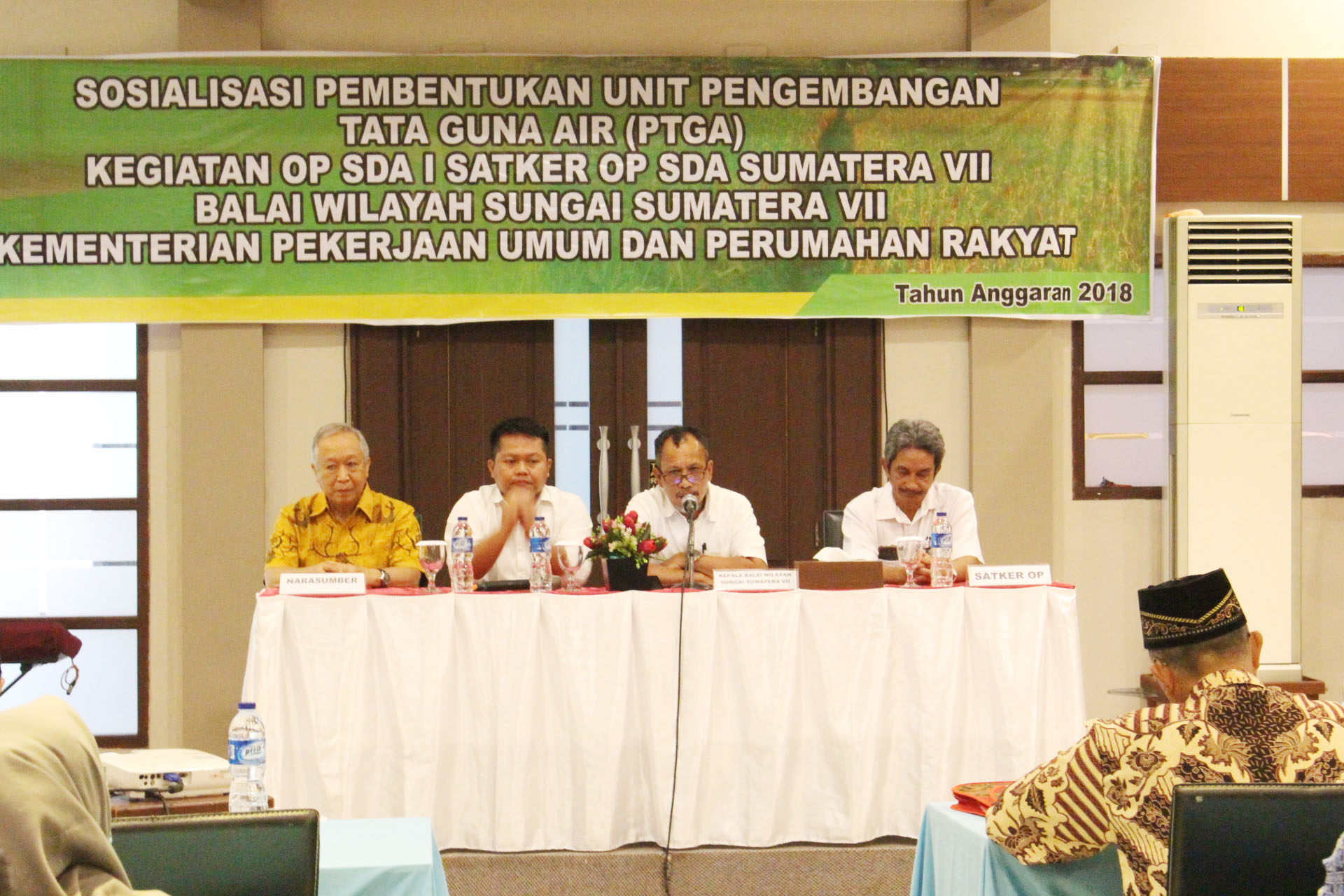 Dalam rangka meningkatkan kapasitas pengelolaan irigasi khususnya di tingkat tersier/P3A, pembina P3A/tersier di berbagai tingkat, pelaksana OP dan Komisi Irigasi, maka PPK OP SDA I Satker OP SDA Sumatera VII menyelenggarakan Sosialisasi Pembentukan Unit Pengembangan Tata Guna Air (Unit PTGA) pada 1 November 2018 di Hotel Nala Sea Side Bengkulu.