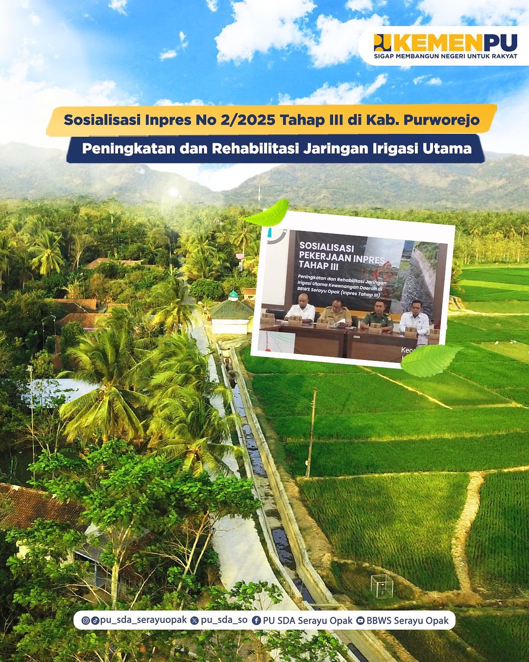 Sosialisasi Inpres 2/2025 Tahap III di Purworejo, Peningkatan dan Rehabilitasi Jaringan Irigasi Utama