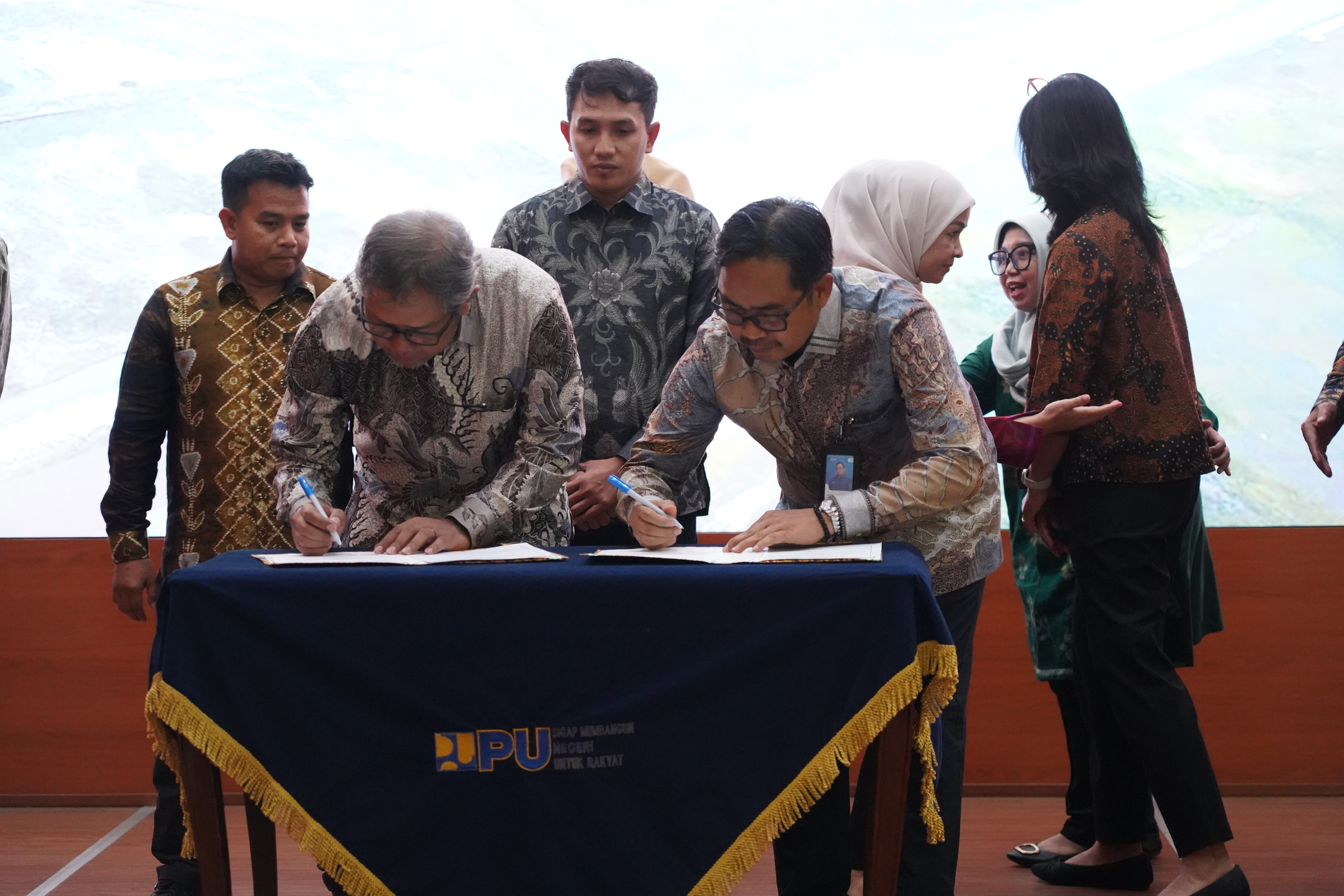 Acara penandatanganan disaksikan oleh Menteri Pekerjaan Umum Dody Hanggodo, Wakil Menteri PU Diana Kusumastuti, Sekretaris Jenderal Kementerian PU Wida Nurfaida, serta para Pejabat Tinggi Pratama di lingkungan Ditjen SDA dan para penyedia jasa.